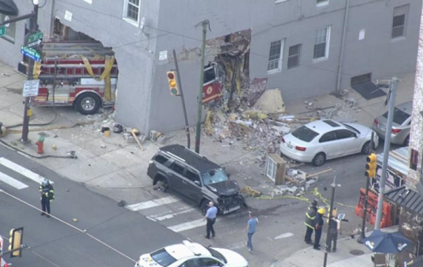 У США, в місті Філадельфія штату Пенсільванія, у четвер, 27 травня, пожежна машина мчала на виклик і зіткнулася з іншим автомобілем, у результаті чого врізалася в будинок. Постраждали п’ятеро людей.