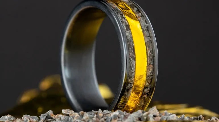 У США ювеліри виготовили унікальну обручку з місячного метеорита та фрагмента космічного корабля «Аполлон-11», завдяки якому в 1969 році астронавти вперше висадилися на поверхню супутника Землі.