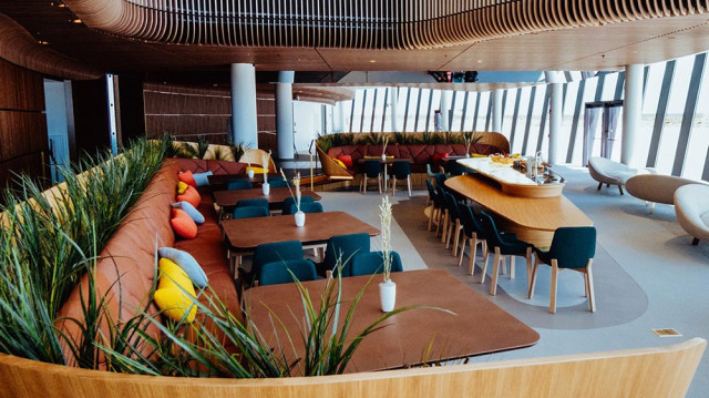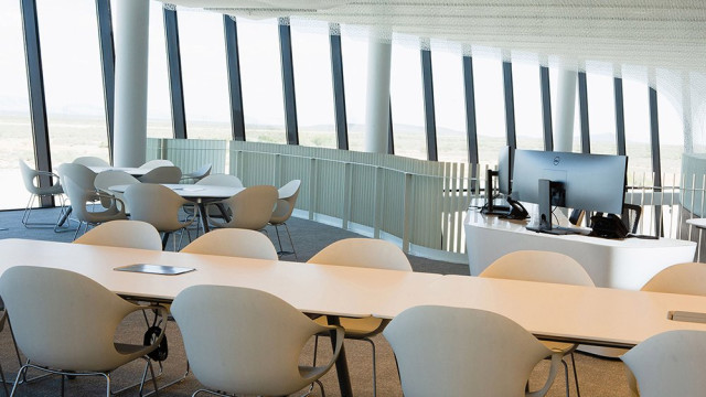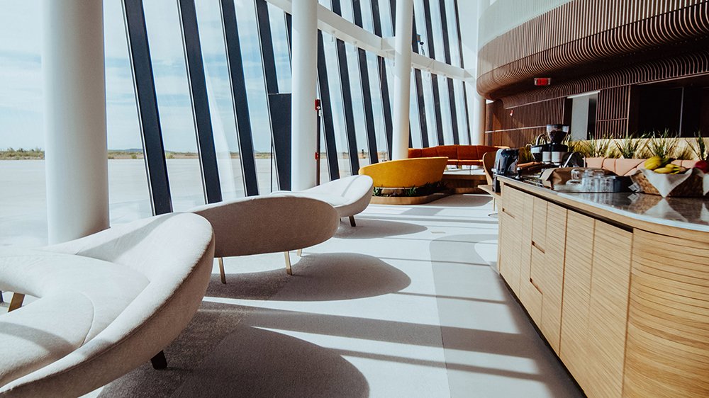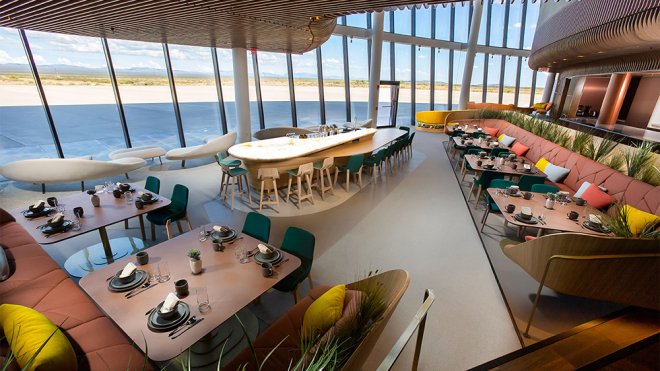 У величезних панорамних вікнах терміналу можна насолодитися видом південноамериканської пустелі, який віддалено нагадує марсіанські ландшафти.