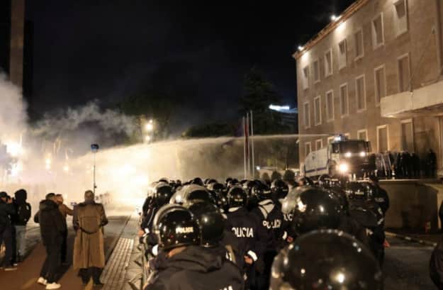 Протестувальники почали жбурляти запалювальну суміш та пускати піротехніку в напрямку офісу прем'єра. Поліція у відповідь застосувала сльозогінний газ та водомет.