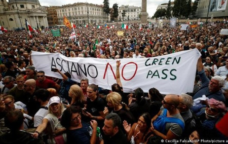У Римі в суботу, 9 жовтня, тисячі людей вийшли на акцію протесту проти запровадження так званих «зелених паспортів» на робочих місцях у зв’язку з пандемією COVID-19. Під час протестів між поліцією та демонстрантами сталися сутички.
