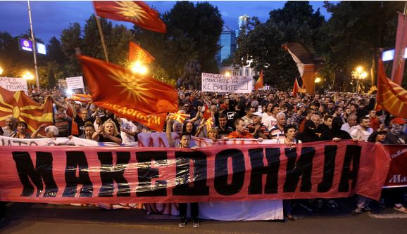 Близько 1500 людей зібралися в центрі Скоп'є з піротехнікою і плакатами, закликаючи до відставки уряду. Учасники акції співали патріотичні пісні і скандували гасла "Відставка Заєва" і "Ми не приймаємо цю назву".