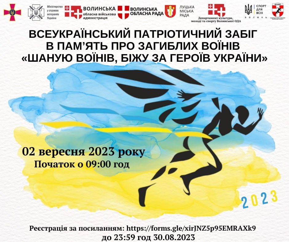 У суботу в Луцьку відбудеться патріотичний забіг «Шаную воїнів, біжу за Героїв України»