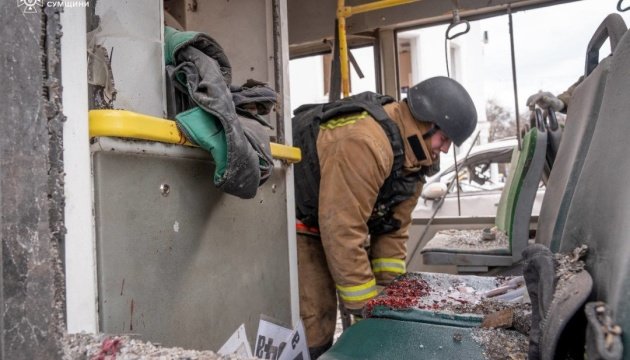 «Суми: станом на 18:00 загинуло 34 особи, з них 2 дитини», – ідеться у повідомленні.