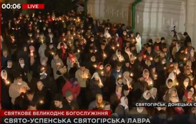 У Свято-Успенській Святогірській Лаврі (УПЦ МП) в Донецькій області на Великодню службу зібралася велика кількість людей, багато з яких були без масок й ігнорували правило соціальної дистанції.