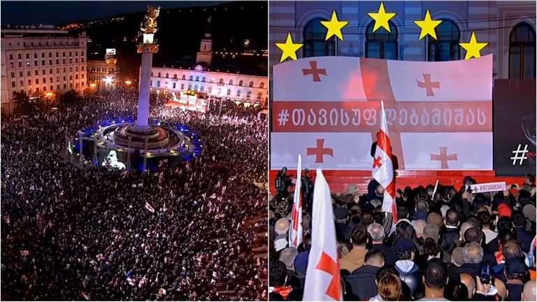 Деякі ЗМІ пишуть, що людей від 30 до 50 тисяч. Вони приїхали навіть з регіонів країни. Акція почалась з того, що гендиректор опозиційного каналу «Мтавари» та адвокат Саакашвілі Ніка Мелія зачитав послання третього президента. У ньому політик закликав громадськість країни до примирення й об’єднання.