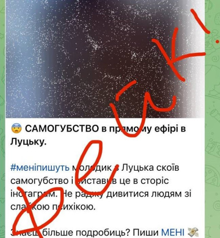 Один з тг-каналів у Луцьку поширив інформацію, що «молодик з Луцька скоїв самогубство і виставив це в сторіс інстаграм».