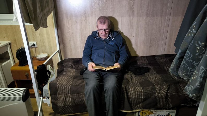 Нині у модульному будинку живе Віктор. Чоловік не має власного житла, другий рік у холодну пору року ночує в модульному будинку терцентру. Каже, що йому тут дали теплий одяг на зиму, має можливість почитати книги.«По під'їздах спав місяцями, по парках, бувало. Як для нас, безхатченків, це взагалі на зиму порятунок. Обігрівач є, умивальник, стіл, щоб сісти поїсти, ліжка, крісла – усе, що треба», – каже Віктор.При терцентрі функціонує приміщення денного перебування для людей з інвалідністю. Тут тричі годують, каже директорка Галина Шатецька. Також у приміщенні денного перебування є кімнати для відпочинку, спеціально обладнаний туалет для людей з інвалідністю, душ. Одна людина може відвідувати відділення 30 днів упродовж року.