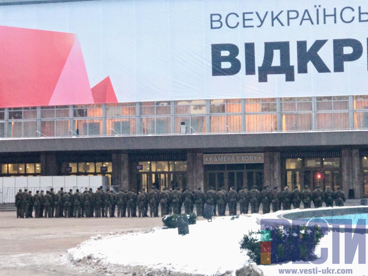 Форум за участю Президента України відбудеться в середині дня, але заходи з охорони даного місця почалися рано вранці. На кадрах видно як перед будівлею «Палацу спорту» розташовують військових біля входу. Також по периметру будівлі знаходиться велика кількість машин національної поліції. Будівля «Палацу спорту» обнесена огорожею.