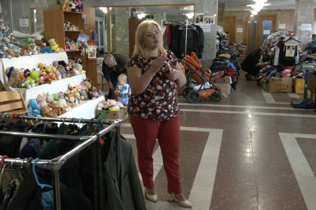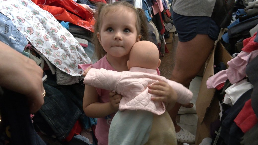 «Ми не можемо там бути через маленьку дитину, страшнувато трішки. Тут шукаємо якісь літні речі, щось таке. Для дитини, щоб вдома ходила, бо для дому трошки дорогувато купляти», – говорить переселенка.Лучанка Вікторія Дмитрук – вчителька. У центрі взаємопідтримки для внутрішньо переміщених осіб допомагає під час відпустки. Каже : працювати – морально важко.