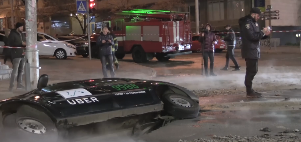 На вулиці Жилянській та Шота Руставелі в центрі Києві прорвало трубу з гарячою водою. Внаслідок аварії автівка водія служби таксі почала нахилятися вбік, і вже протягом 8 хвилин пішла під асфальт. На місці працюють рятувальники та ремонтні бригади. Влада міста наразі не коментувала ситуацію.