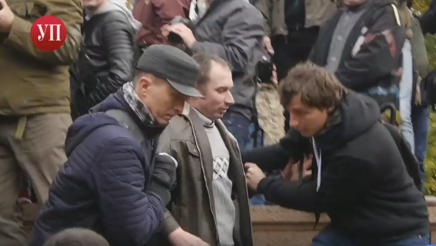 У центрі Києва, де націоналісти збираються перед ходою на честь Дня захисника України, затримали чоловіка за нацистське вітання.