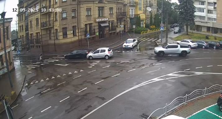 Диспетчер відділу «Центр безпеки міста Луцьк» за допомогою системи відеоспостереження зафіксував дорожньо-транспортну пригоду 12 вересня, о 10:43, на перехресті вулиць Словацького-Шевченка.