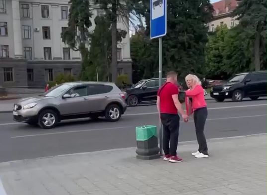 «Я гружоний, я її чуть не збив, я б її преїхав нах..й, і зараз сидів би», – пояснює чоловік свій вчинок перехожим.