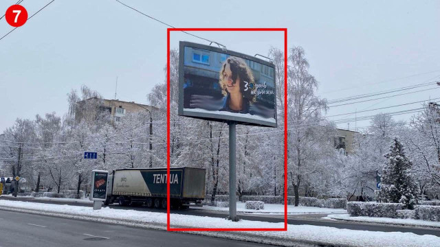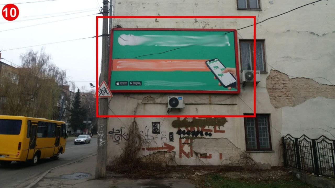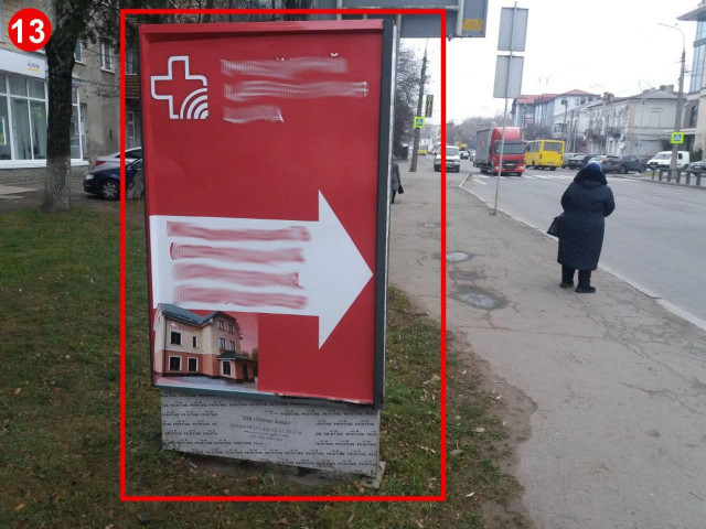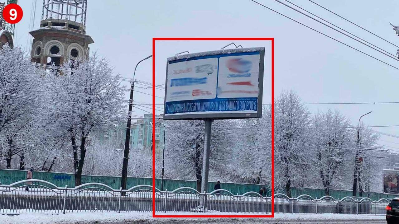 Біг борд на вул Карпенка Карого той що біля Сафрона, розміщений прямо на пішохідному переході та мішає людям і водіям бо зменшує видимість. Рік назад вже люди постраждали. Перевірте чи встаноалений правильно.