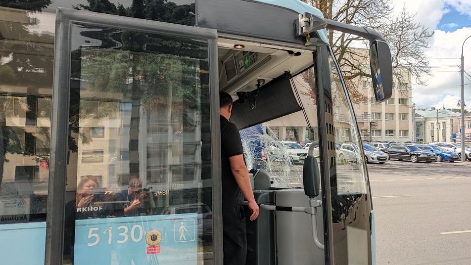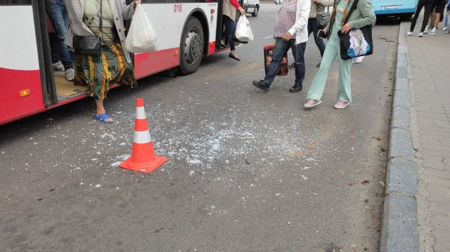 Водій автобуса №10 Василь Ротмислович розповів, що його транспорт виїхав на тротуар через зіткнення з іншим автобусом.