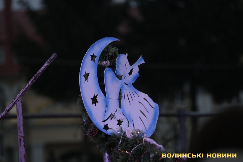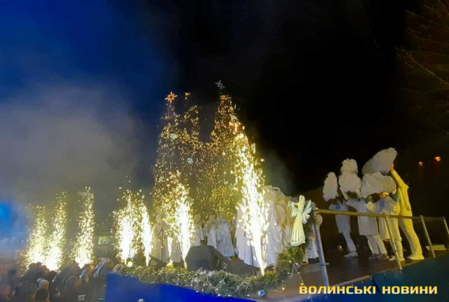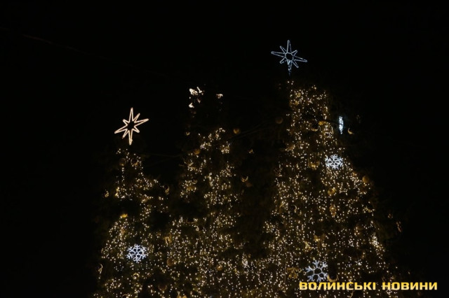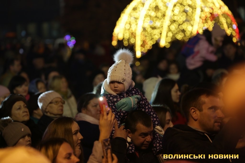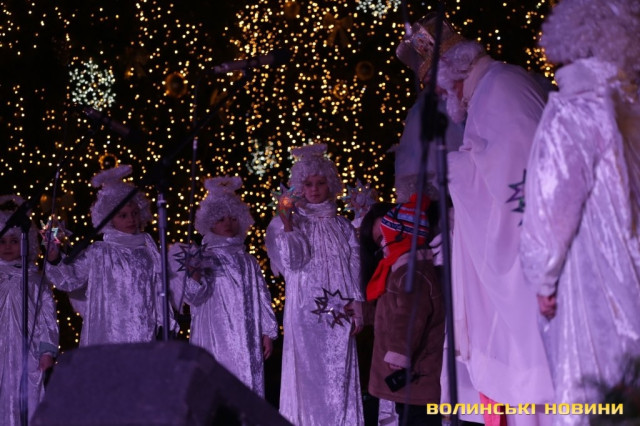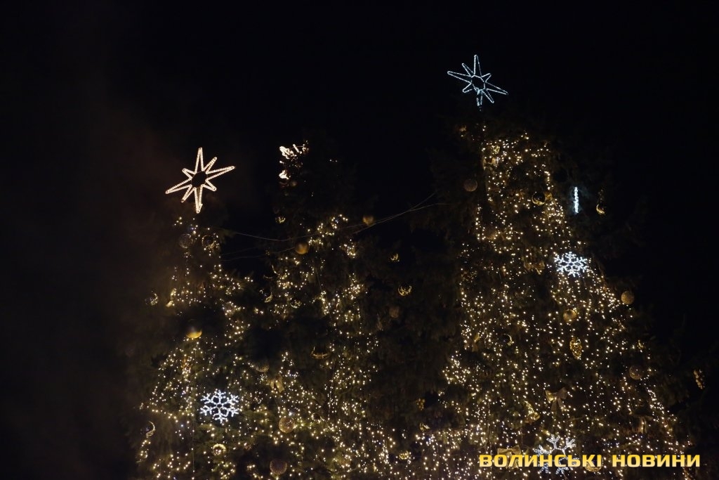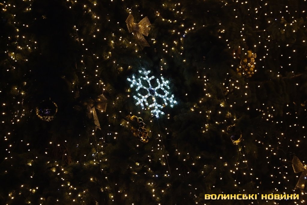 Святий покровитель міста, побажання миру, щастя та любові та небесний вогонь: у центрі Луцька засяяли різдвяні та новорічні ялинки.