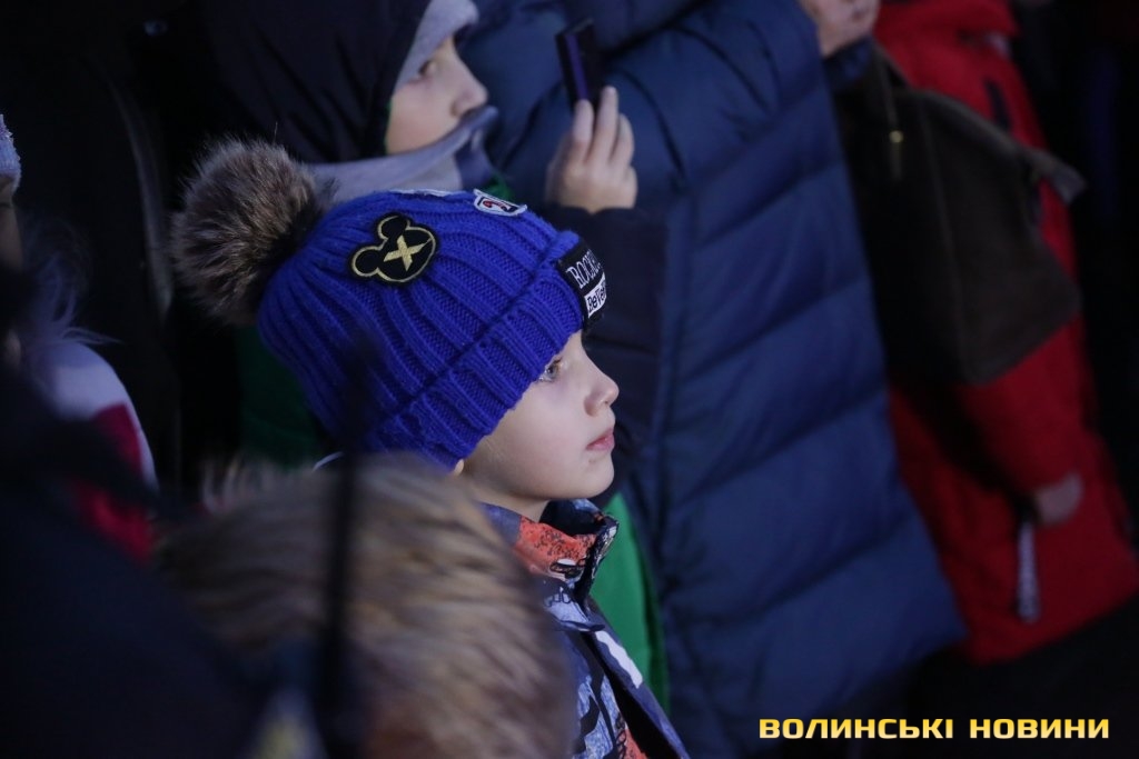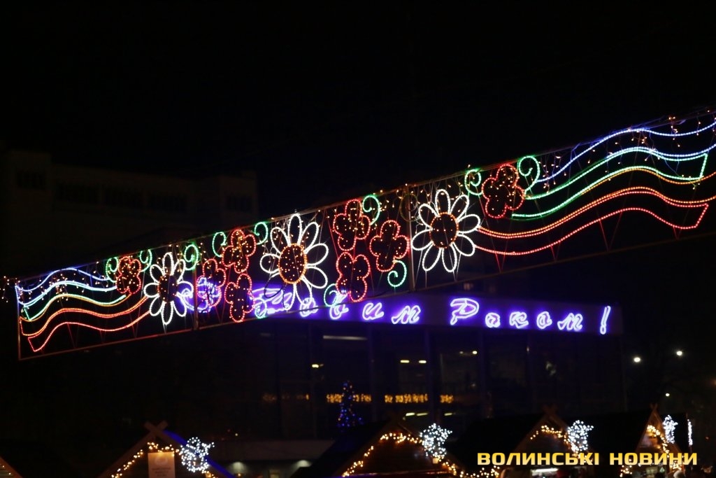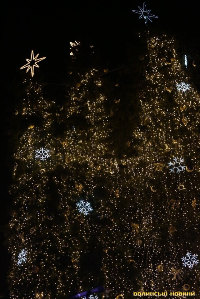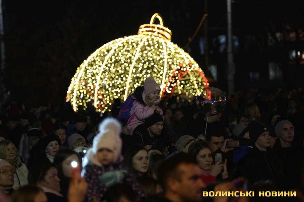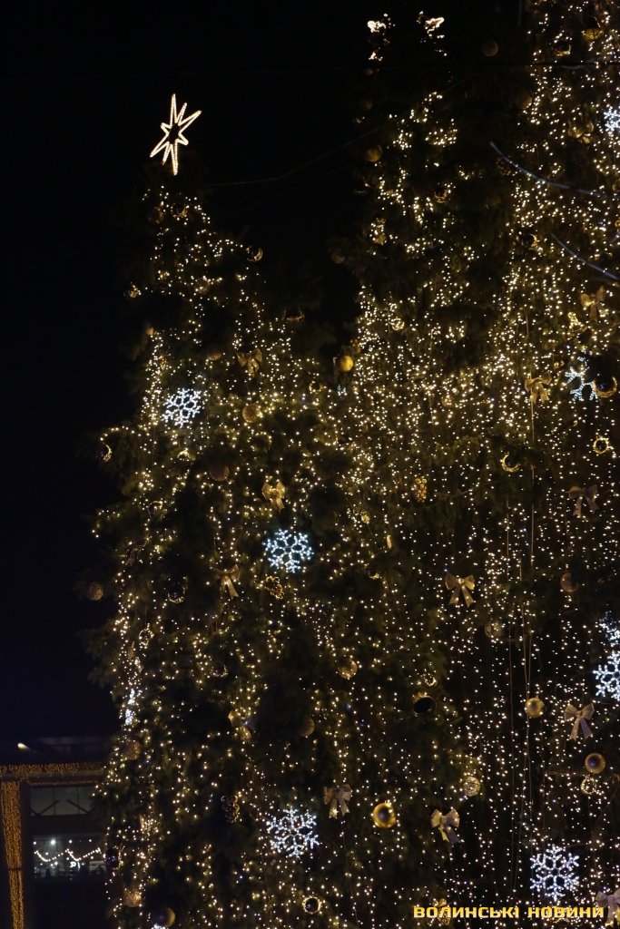 Святий покровитель міста, побажання миру, щастя та любові та небесний вогонь: у центрі Луцька засяяли різдвяні та новорічні ялинки.