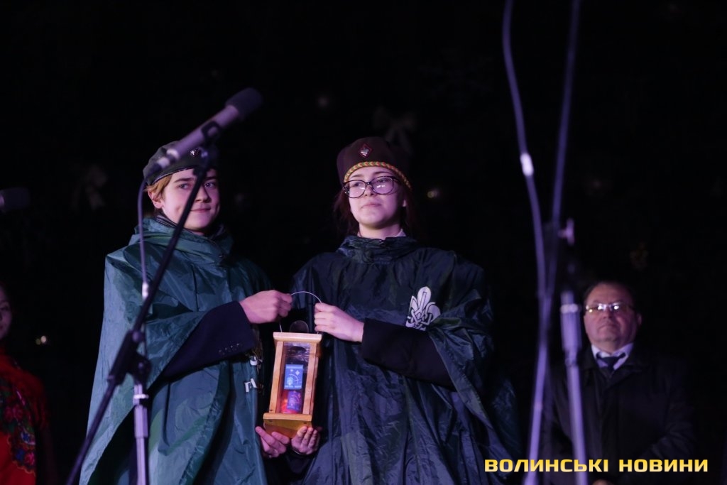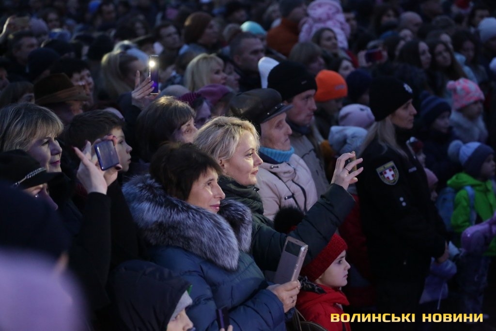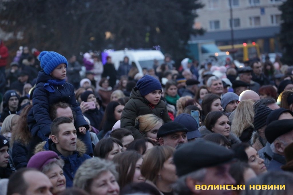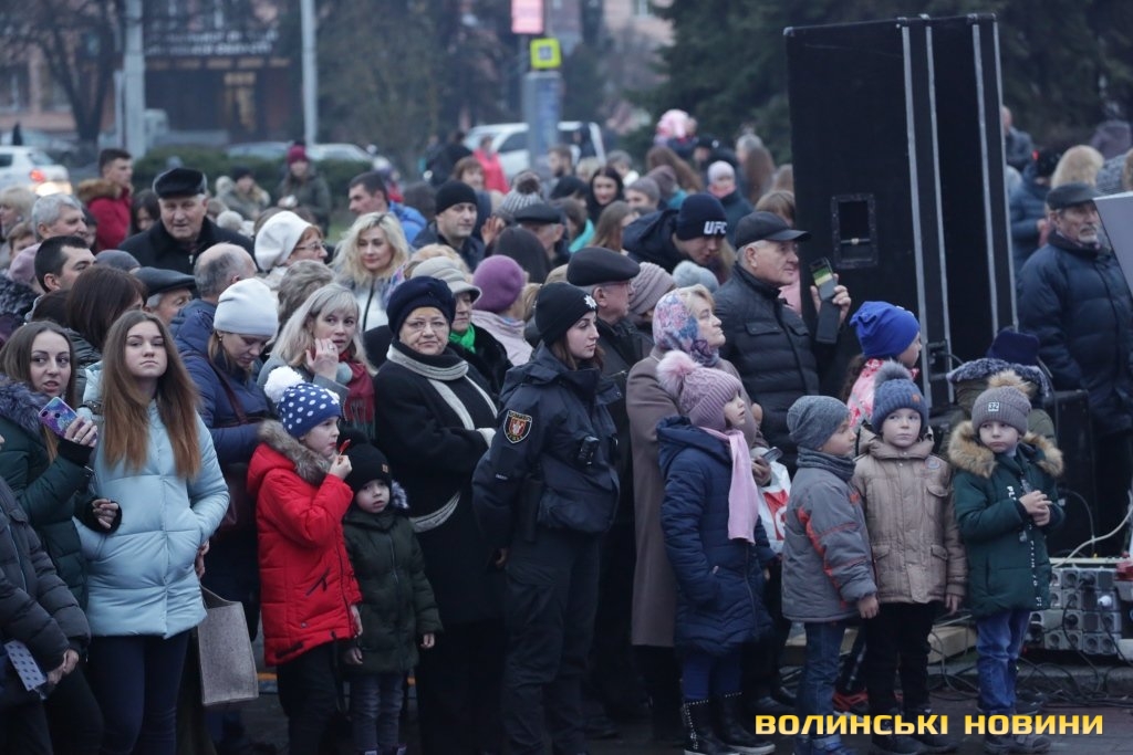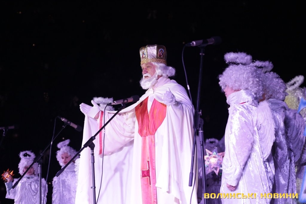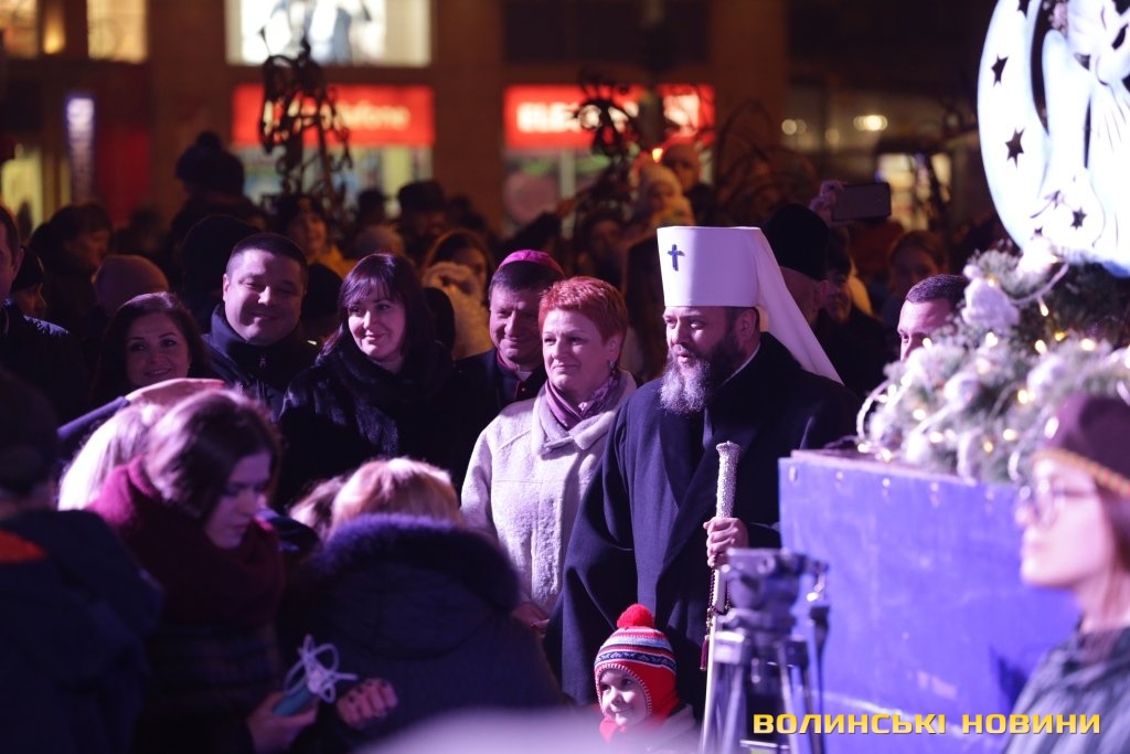 Митрополит Луцький та Волинський Михаїл зауважив, що доброю та славною традицією є засвічення ялинки як передвісника великих подій Різдва Ісуса Христа. Це очікування великої радості, добрих справ, успіхів у справах. Він побажав, щоб сьогоднішній вечір започаткував святкування та Божого благословення усіх задумів та мрій, аби віра долала всі труднощі.Голова Волинської обласної ради Ірина Вахович вітала волинян від імені депутатського корпусу облради та бажала кожному єдності. миру, любові, добробуту, тримати в серці любов та робити всі справі з любов’ю та для добра, щоб 2020 рік став роком миру для України.Виконувач повноважень Луцького міського голови Григорій Пустовіт вітав лучан зі святом свого покровителя Миколая. 2019 рік, з його слів, приніс містянам багато подарунків від святого патрона і з таким покровителем лучани просто приречені на успіх. Посадовець побажав, щоб кожна дитина отримувала подарунки, щоб святий Миколай виконував її мрії, а святковий період був особливим для лучан.Вифлеємський вогонь миру передали громаді міста представники «Пласту».Патрон міста Святий Миколай звернувся до лучан з благословеннями, зичачи здоров’я та радості, зоб кожен день, що починається з молитви, приносив задоволення потреб матеріальних та духовних. Він бажав, щоб попори війну та страждання кожен знайшов у собі сили для того, щоб зробити життя оточуючих кращим. Своїх помічників-янголят він просив нести вогонь небесний людям, заходячи до кожної оселі та бажаючи щастя кожній людині та освітити центральну пішохідну вулицю Луцька, яку під час різдвяних та новорічних свят називають вулицею янголів.