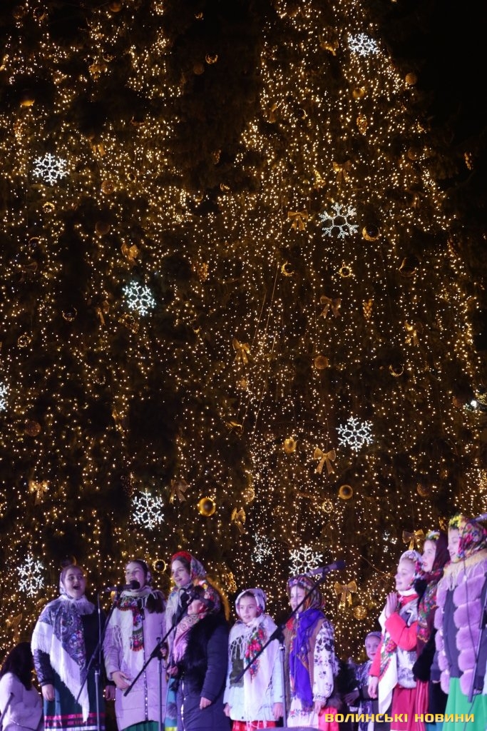 Після завершення віншувань на лучан очікувало яскраве засвічення вогнів різдвяної ялинки.