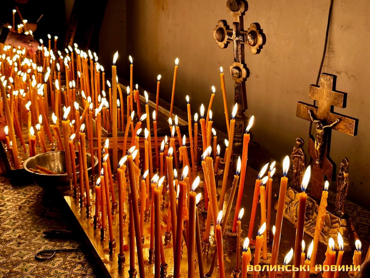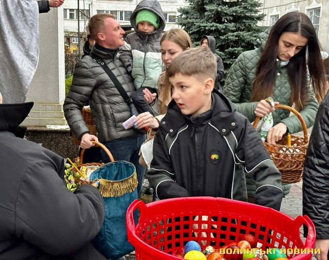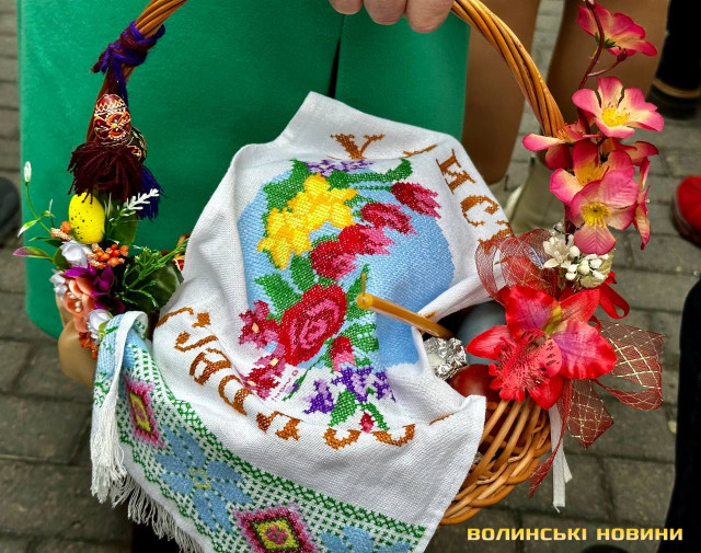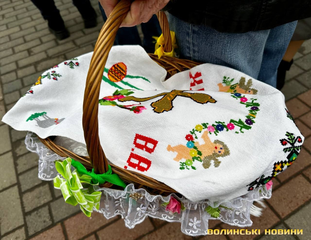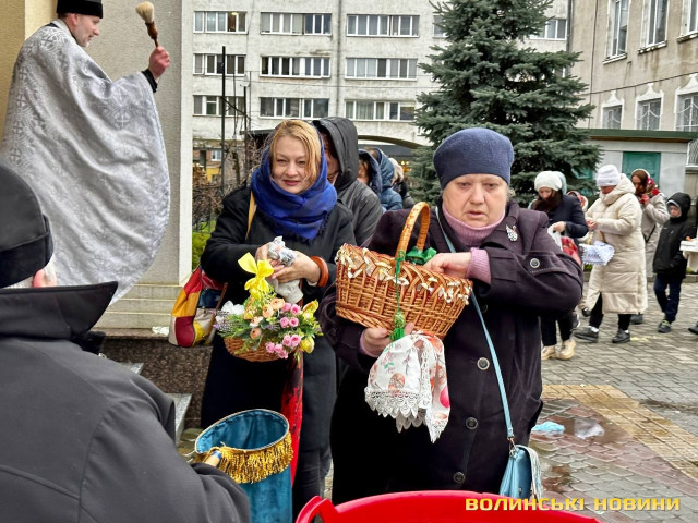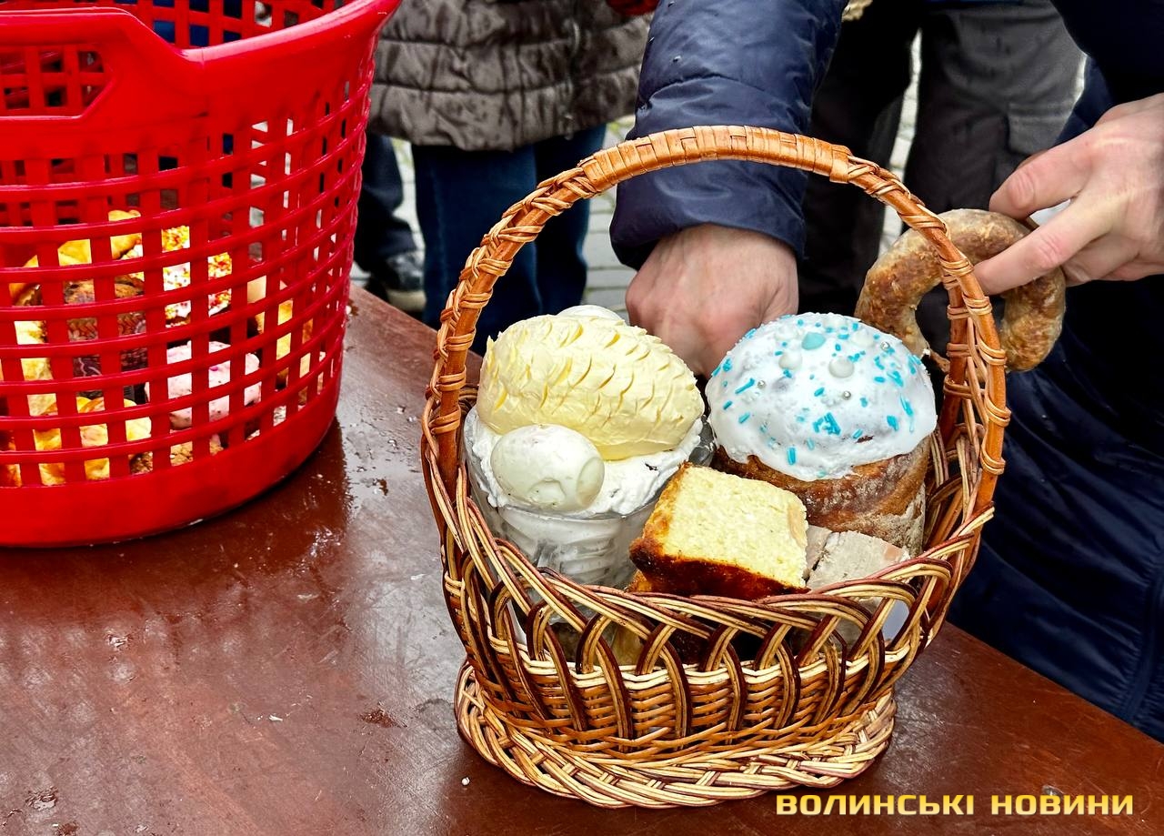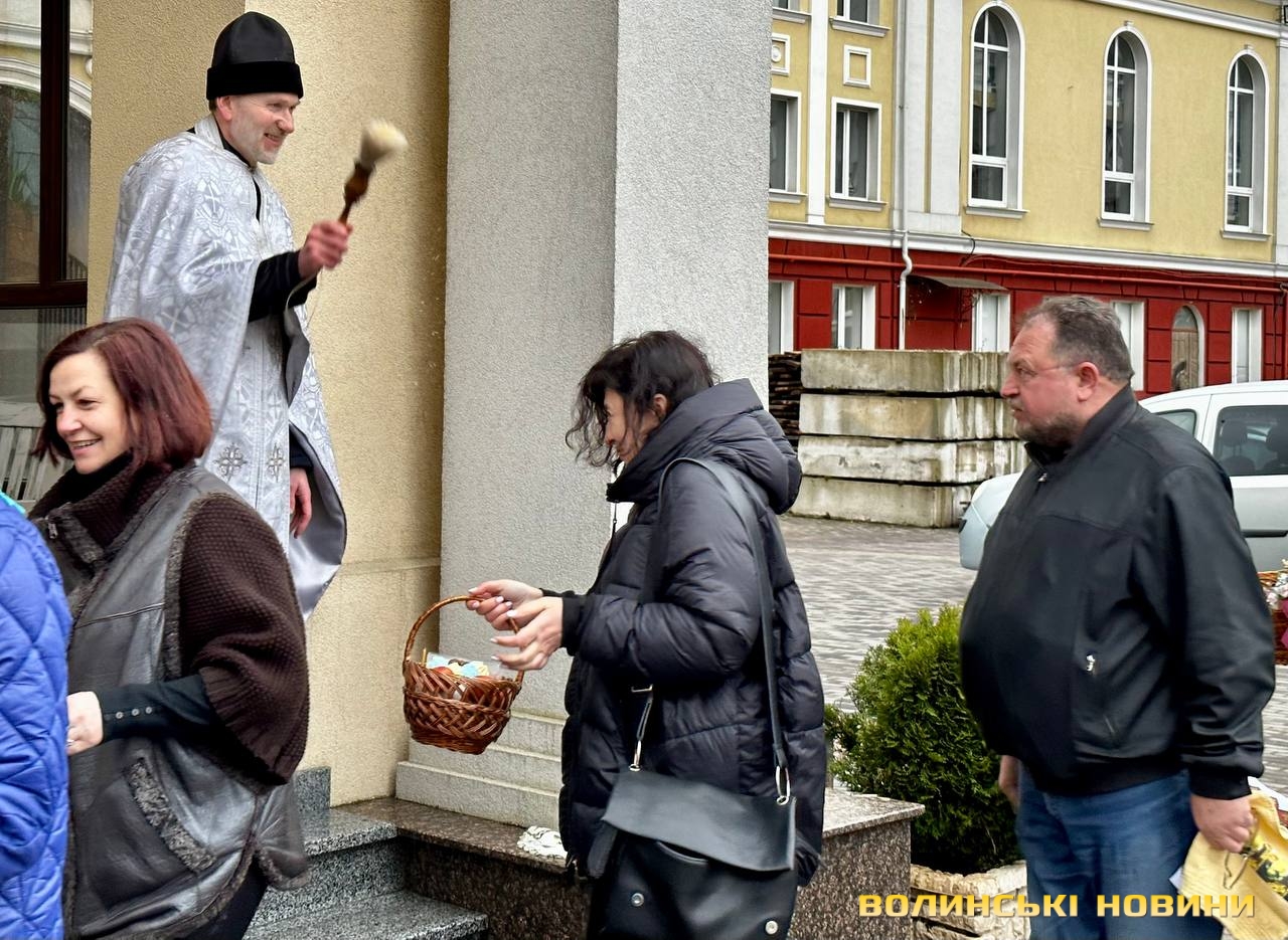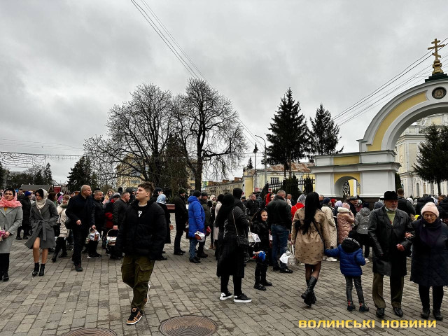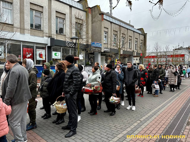 Оскільки через війну з росією на Волині діє комендантська година, лучани прийшли освятити великодні кошики вдень, хоча у попередні роки багато з них приходили до храмів вночі.