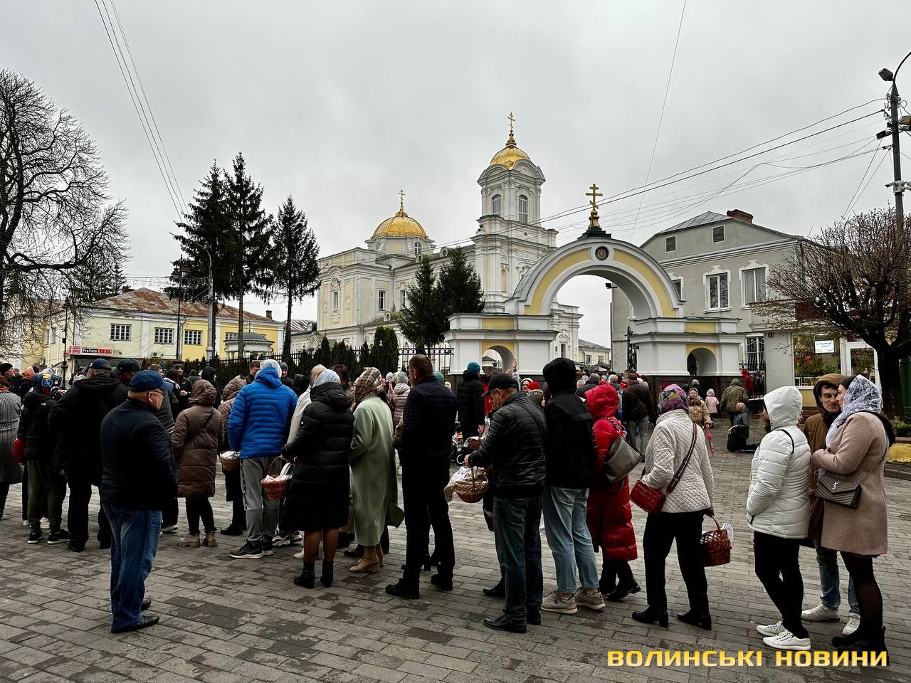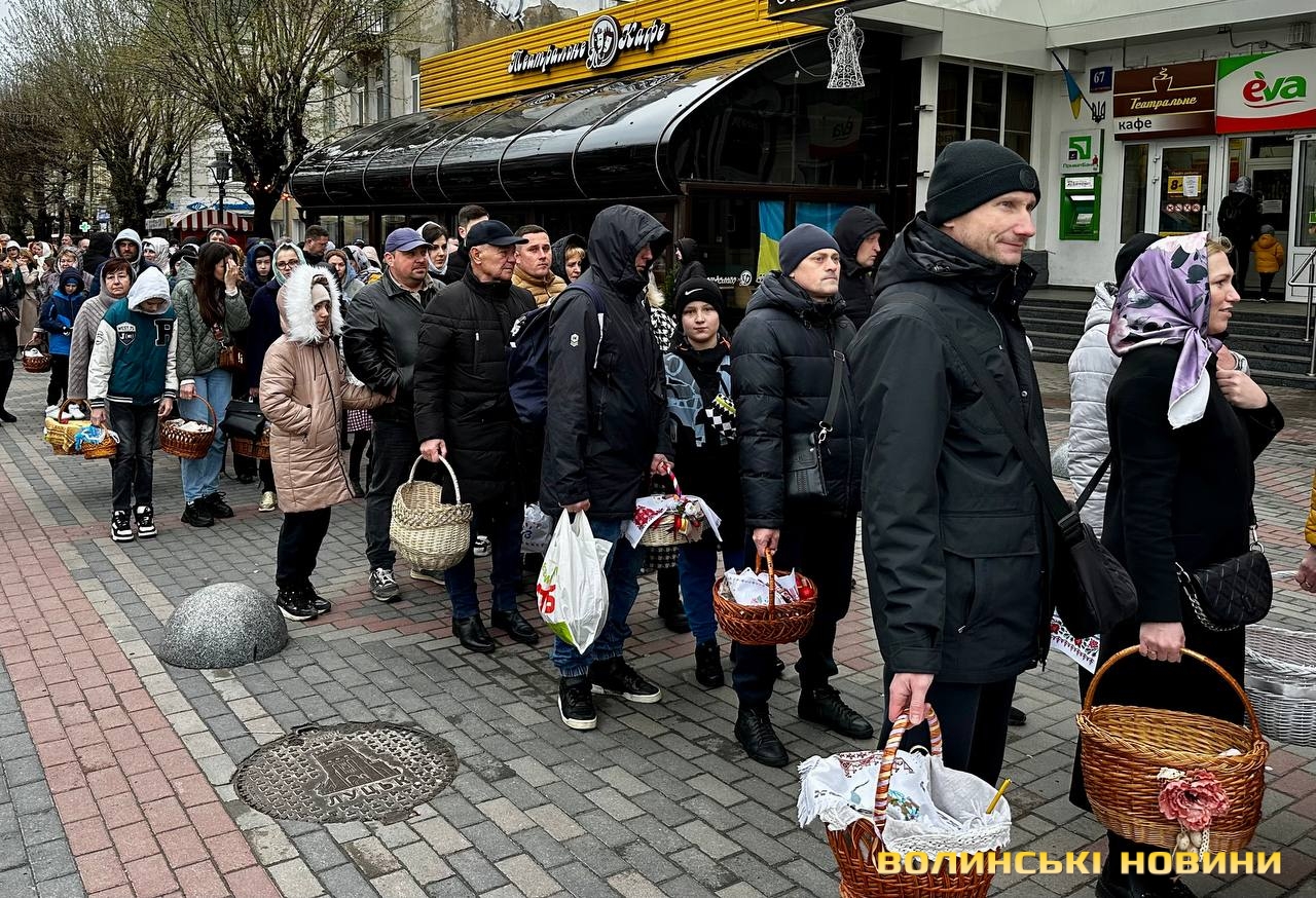 У суботу, 15 квітня, сотні лучан вишикувалися в кілометрову чергу до Свято-Троїцького собору, що в центрі, аби освятити великодні кошики.