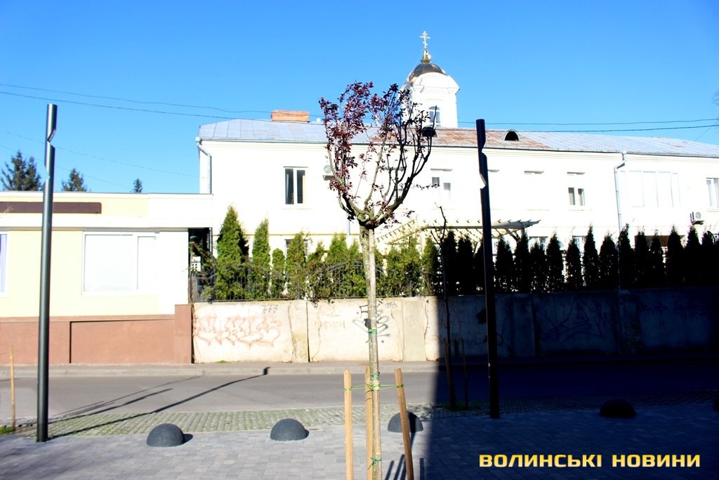 Червонолиста слива родом з Ірану. Дерево виростає до 6 метрів у висоту. Має темно-пурпурне листя.Квіти розпускаються у квітні. Листя з’являється під час або після цвітіння. У декоративної сливи є і кислуваті плоди, які, якщо їх не зібрати, прикрашають гілки дерев аж до пізньої осені.Нагадаємо, сквер поблизу Театрального майдану постав у 2019 році з проекту дизайнера Левка Давидюка. Лучанин, який працює у Львові, є засновником та арт-директором дизайнерської студії «LeoD'ukDesign» і автором дизайну багатьох креативних просторів у рідному місці (ресторанів, коворкінгів, кафе, тощо), розробив проект на прохання замовників.У новому сквері є бетонні лавки-зигзаги з дерев’яними сидіннями.Спеціально для нього купили і висадили 16 дерев. Це – декоративні сливи та клени. Дерева високі, їм уже 5 років.Фото і текст Вікторії Семенюк