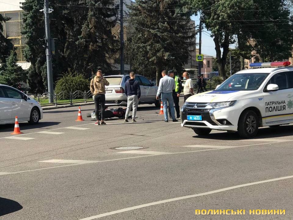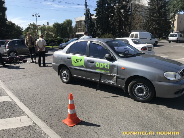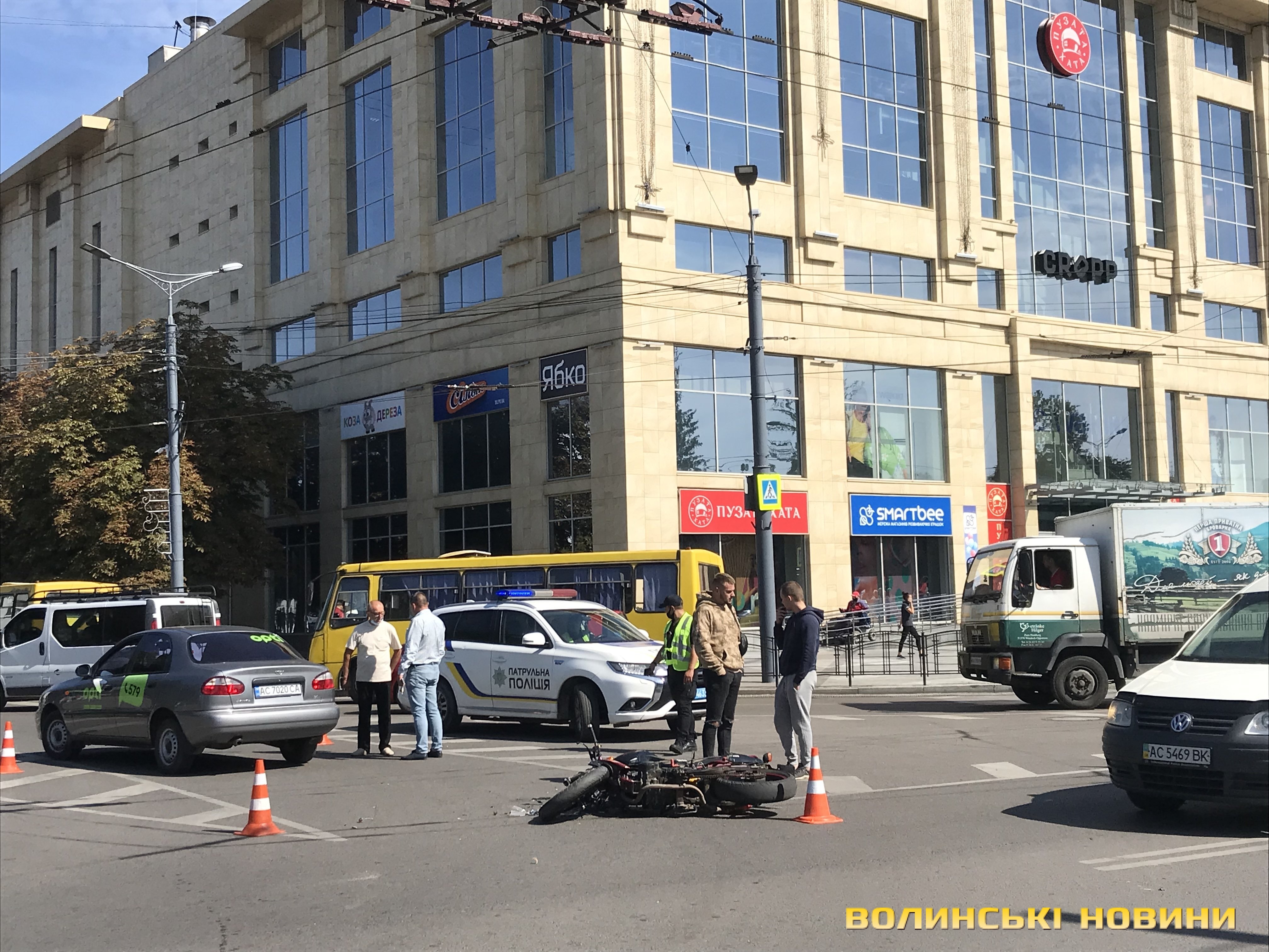 У центрі Луцька мотоцикліст влетів у автомобіль таксі. Фото
