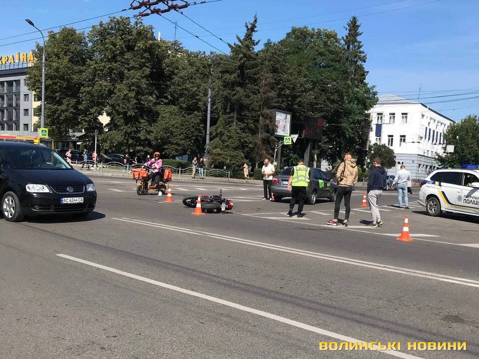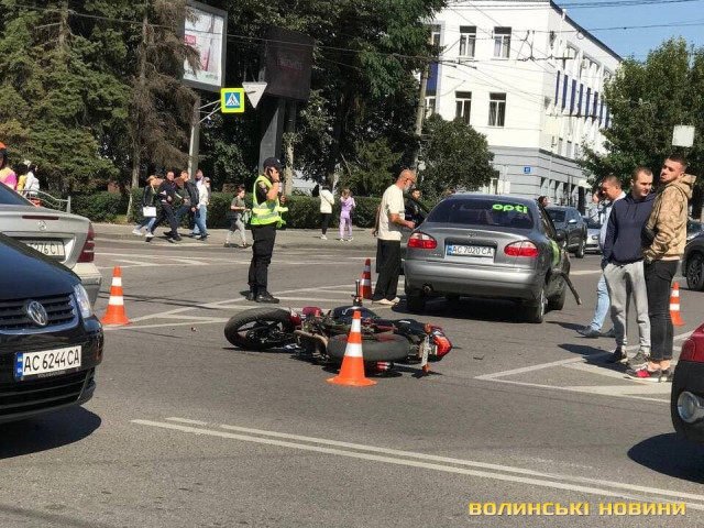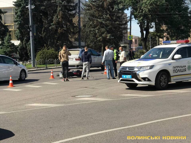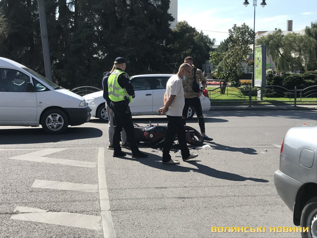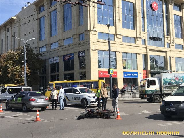 У центрі Луцька трапилась аварія за участю мотоцикла та легкового авто.