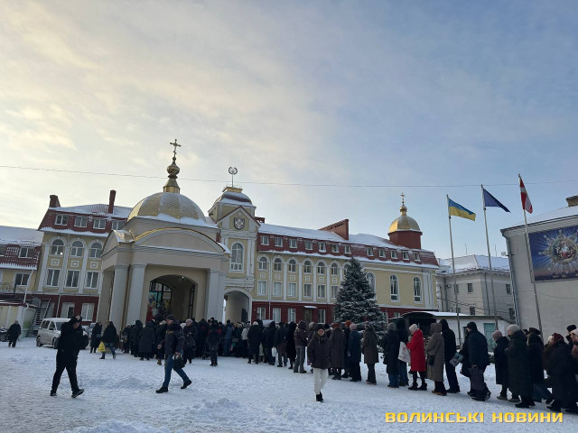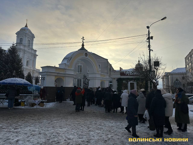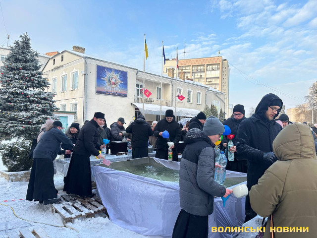 Лучани з самого ранку прийшли до Свято-Троїцького кафедрального собору по святу воду. В дворі храму містяни вишикувалися в чергу, щоб взяти свою порцію святої йорданської води.