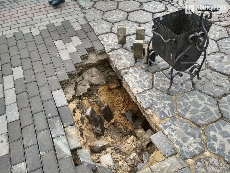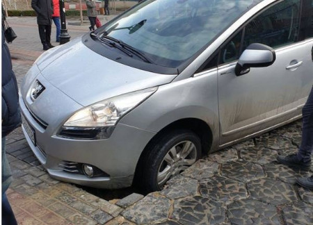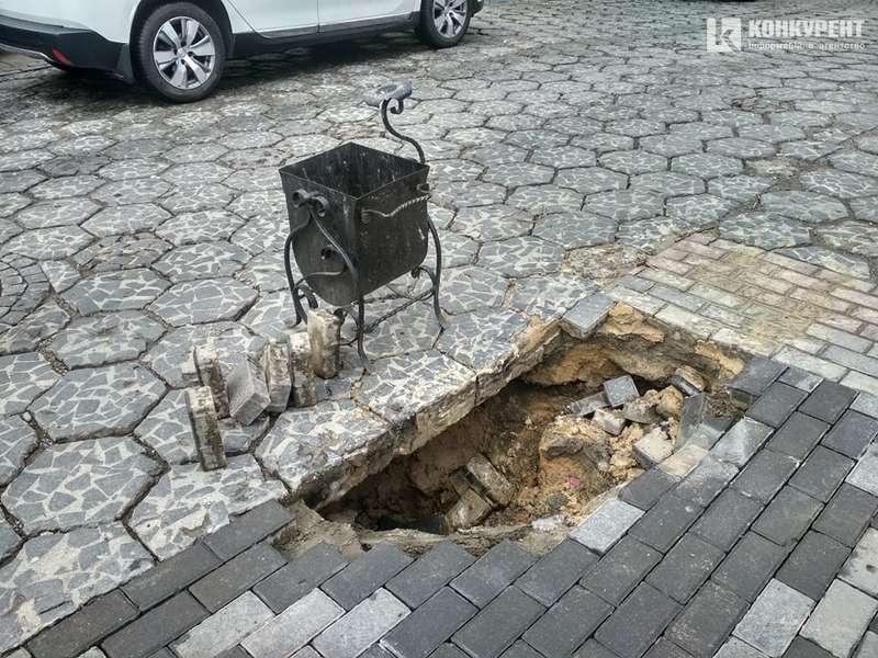 У центрі Луцька під автомобілем провалилась бруківка. Фото