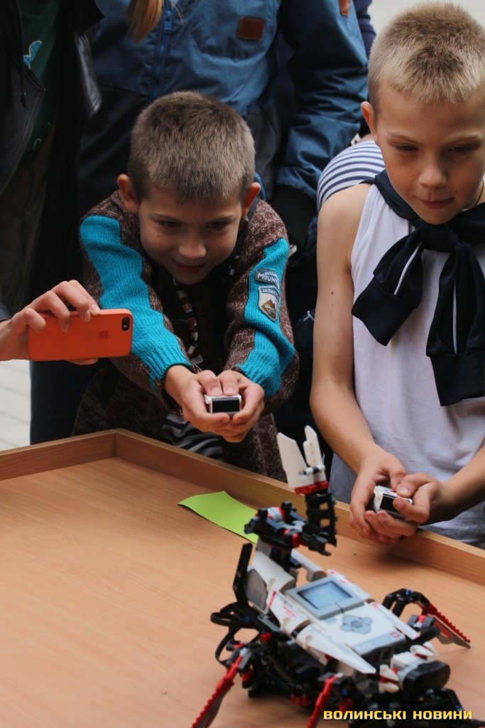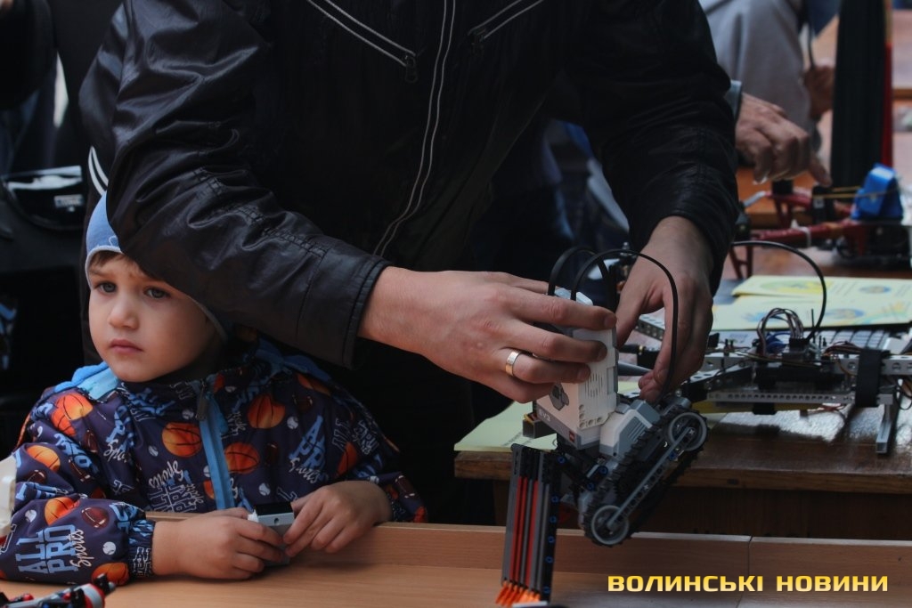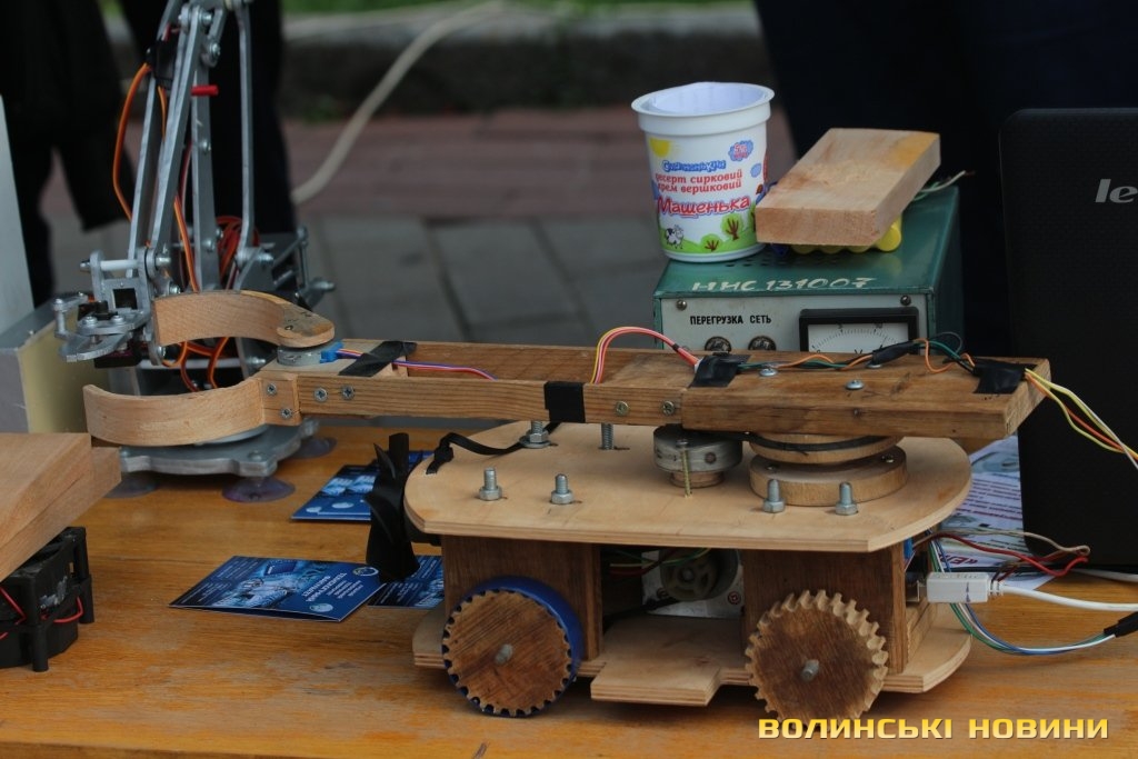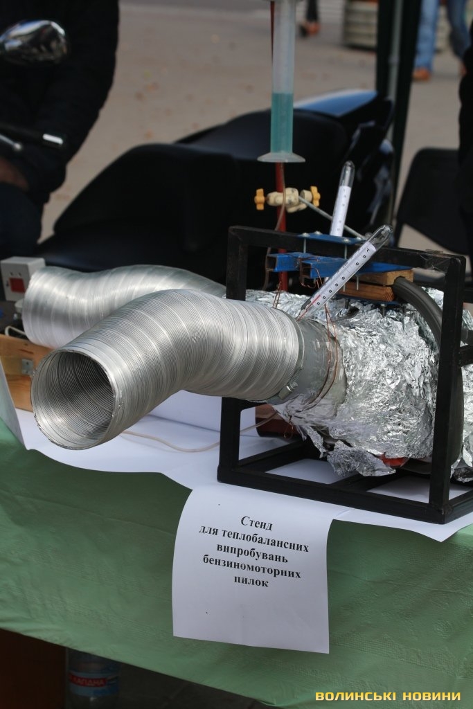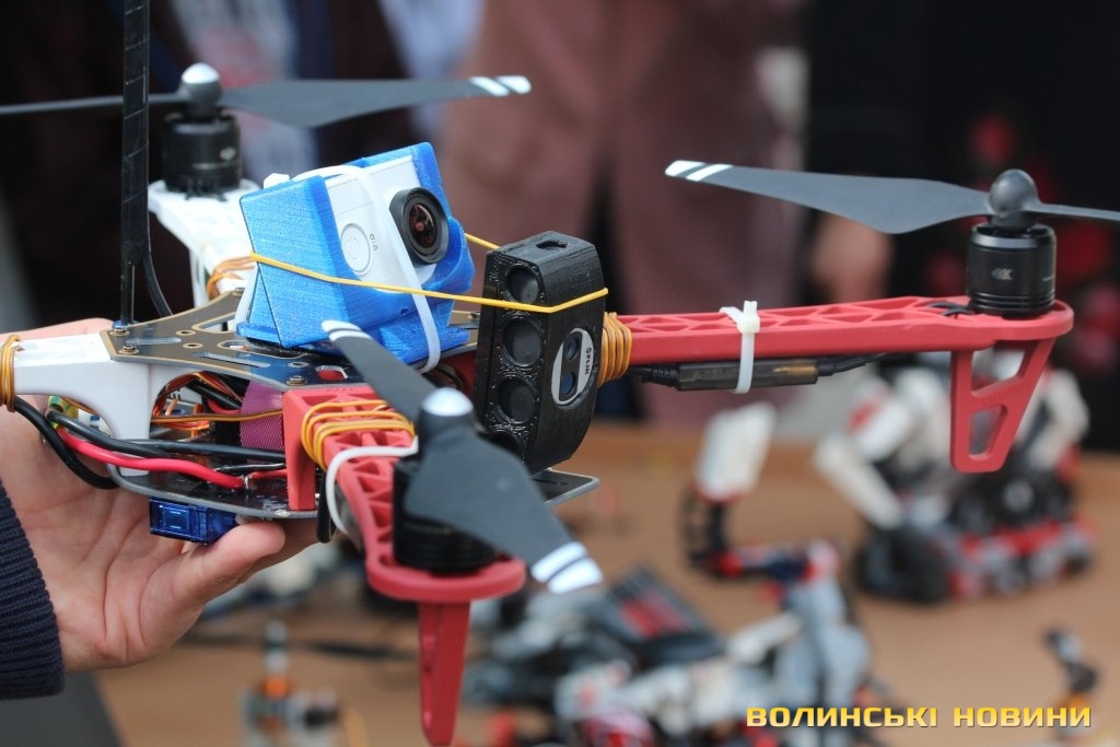 Як розповів учасник заходу, учень 11 касу Луцького НВК «Гімназія №14 імені Василя Сухомлинського», слухач секції електроніки та приладобудування обласної МАН Микола Свереда, він презентує тут свій новий проект – технологію використання безпілотного літального апарату для пошуку теплових втрат. Тобто, це дрон, обладнаний тепловізором для пошуку теплових страт будівель на великій висоті. Це актуально зважаючи на закон про енергоефективність будівель. Наразі, якщо будинок високий, потрібно наймати альпіністів, а за допомогою такого винаходу можна значно швидше та якісніше здійснити таке ж саме обстеження значно дешевше. Для того, щоб зібрати пристрій, хлопцеві знадобилося два тижні, ще місяць – для того, щоб його налаштувати та декілька місяців, аби навчитися ним керувати. Щодо вартості, він зазначив, що дрон коштує 12 тисяч гривень, ще приблизно по 9 тисяч – тепловізор та апаратура управління. На його думку. з набранням чинності загаданого закону, знайдеться чимало людей, які захочуть здійснювати такі обстеження багатоповерхівок.