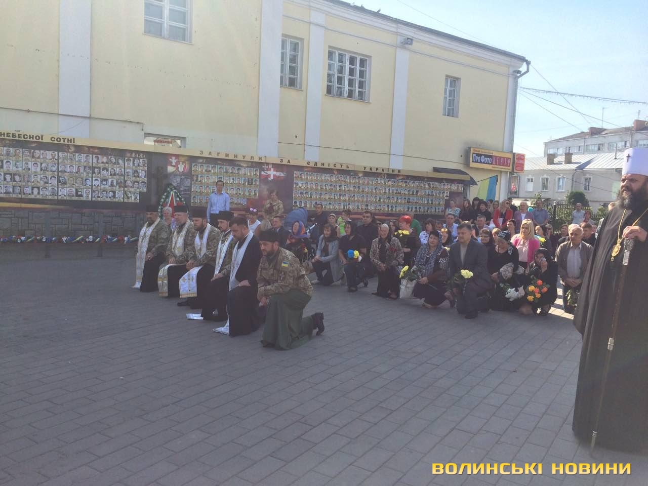 У зв’язку із похороном військовослужбовця сьогодні у Луцьку оголосили День жалоби, на знак скорботи на адміністративних приміщеннях міської ради, підприємствах, установах, організаціях державної, комунальної та інших форм власності на території міста приспустили Державний Прапор України з чорною стрічкою.