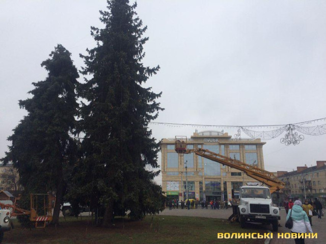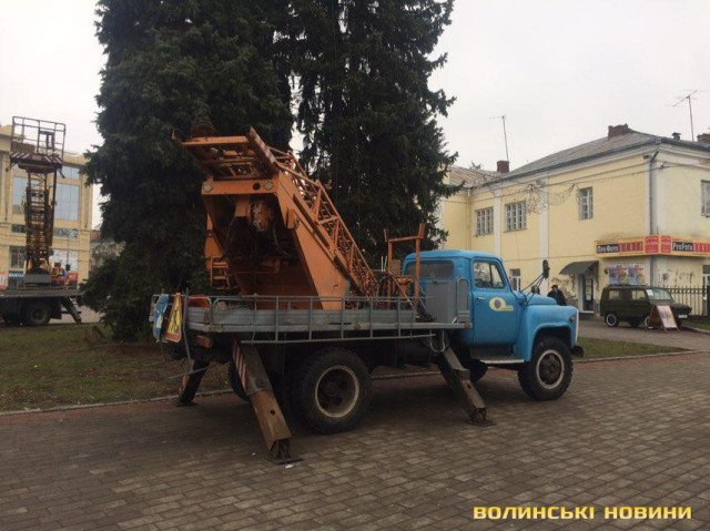 На Театральному майдані Луцька розпочали прикрашати ялинки до новорічно-різдвяних свят.