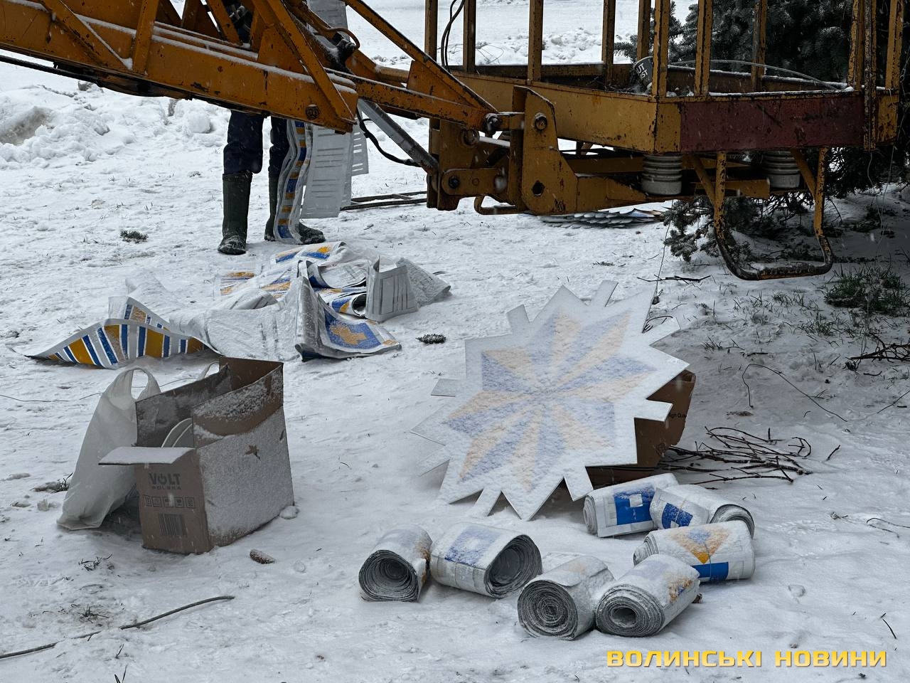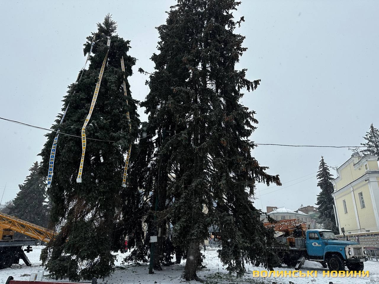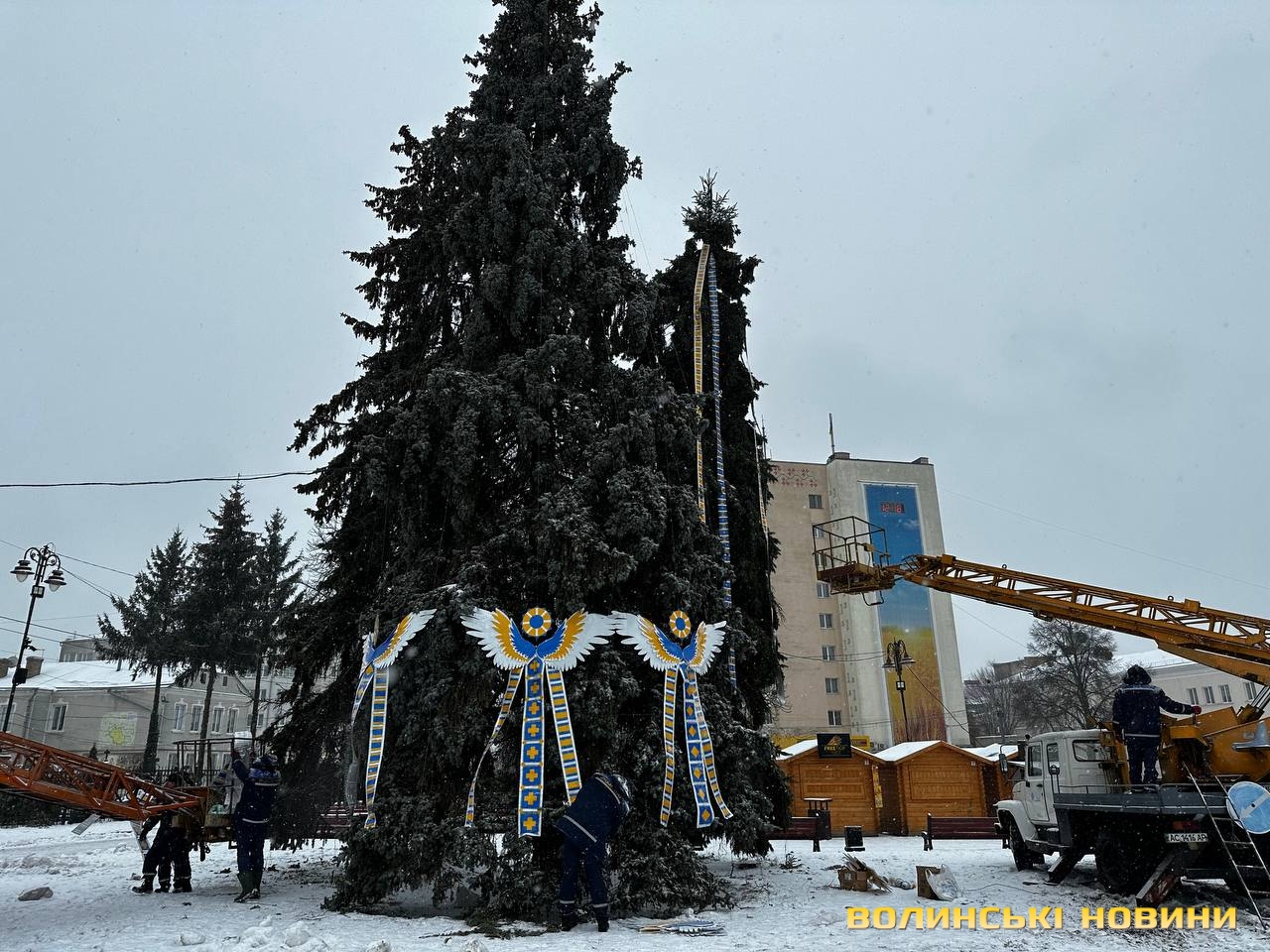 Головне ялинкове тріо прикрашають працівники «Луцьксвітла». Як зазначили, планують закінчити роботи до новорічних свят.