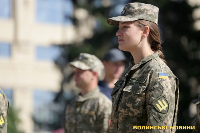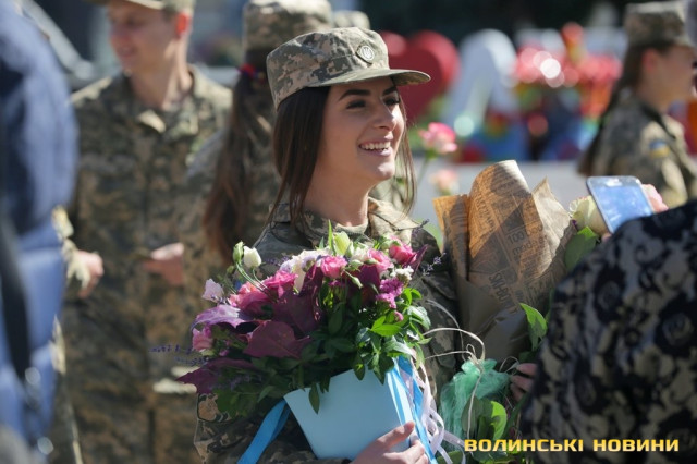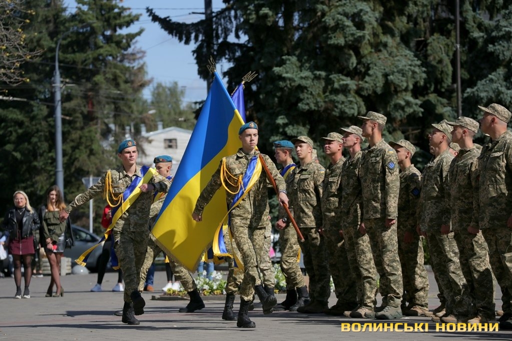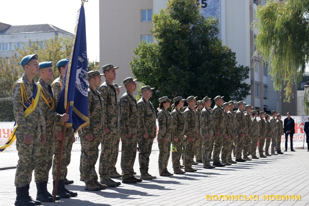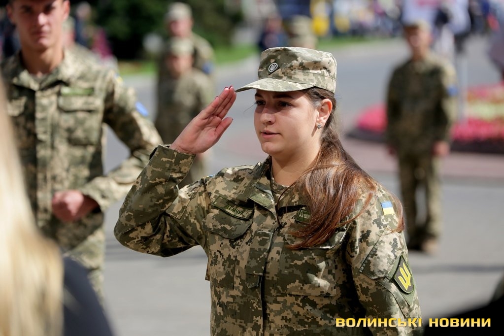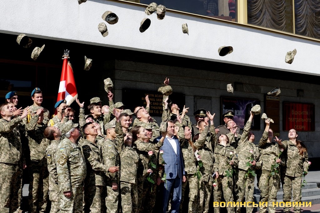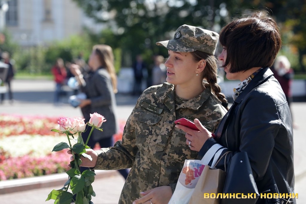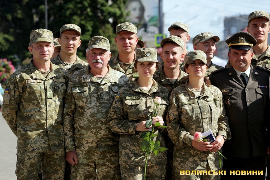 38 юнакам та дівчатам, які є випускниками військової кафедри ЛНТУ, у центрі Луцька урочисто вручили омріяне офіцерське звання – молодший лейтенант запасу.