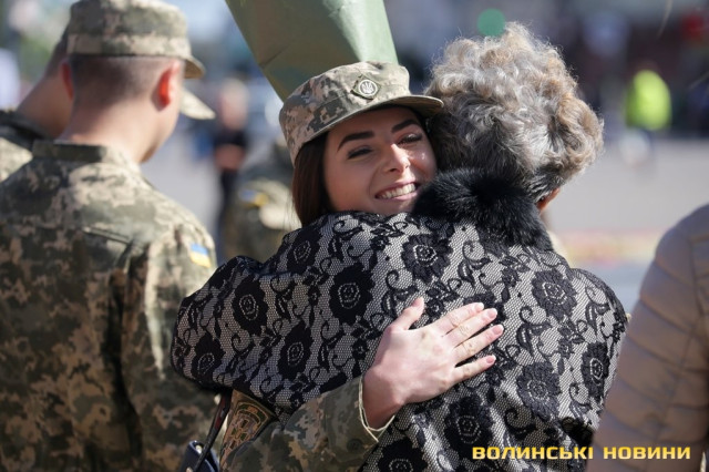 Наприкінці заходу офіцери пройшлися урочистим маршем, підкинувши в повітря монети. А вже невдовзі потонули в обіймах рідних.