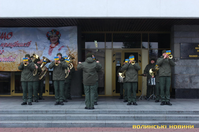 Водночас на площі триває виставка сільськогосподарської техніки від волинських підприємств.Особливого шарму дійству, своєю чергою, додають святкові мелодії у виконанні військового оркестру.