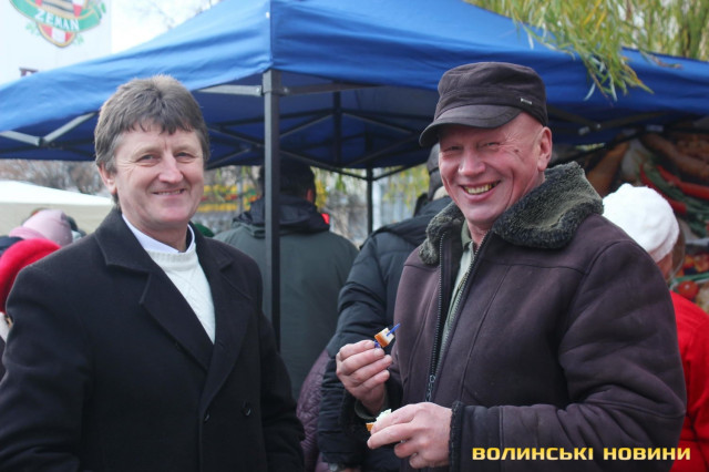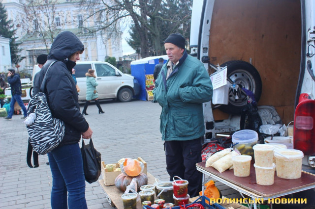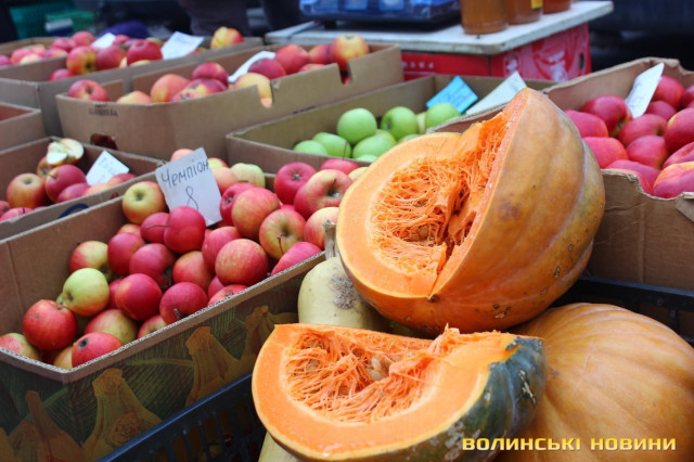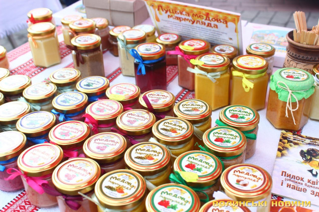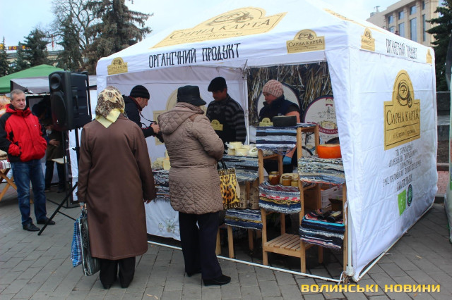 Яблука, кріп, картоплю, капусту, мед, настоянки, випічку, сири, пиво, ковбаси та багато іншої продукції можна придбати на Театральному майдані. Окрім того, виробники, які приїхали з різних куточків Волинської області, залюбки частують своїми делікатесами усіх охочих задарма.