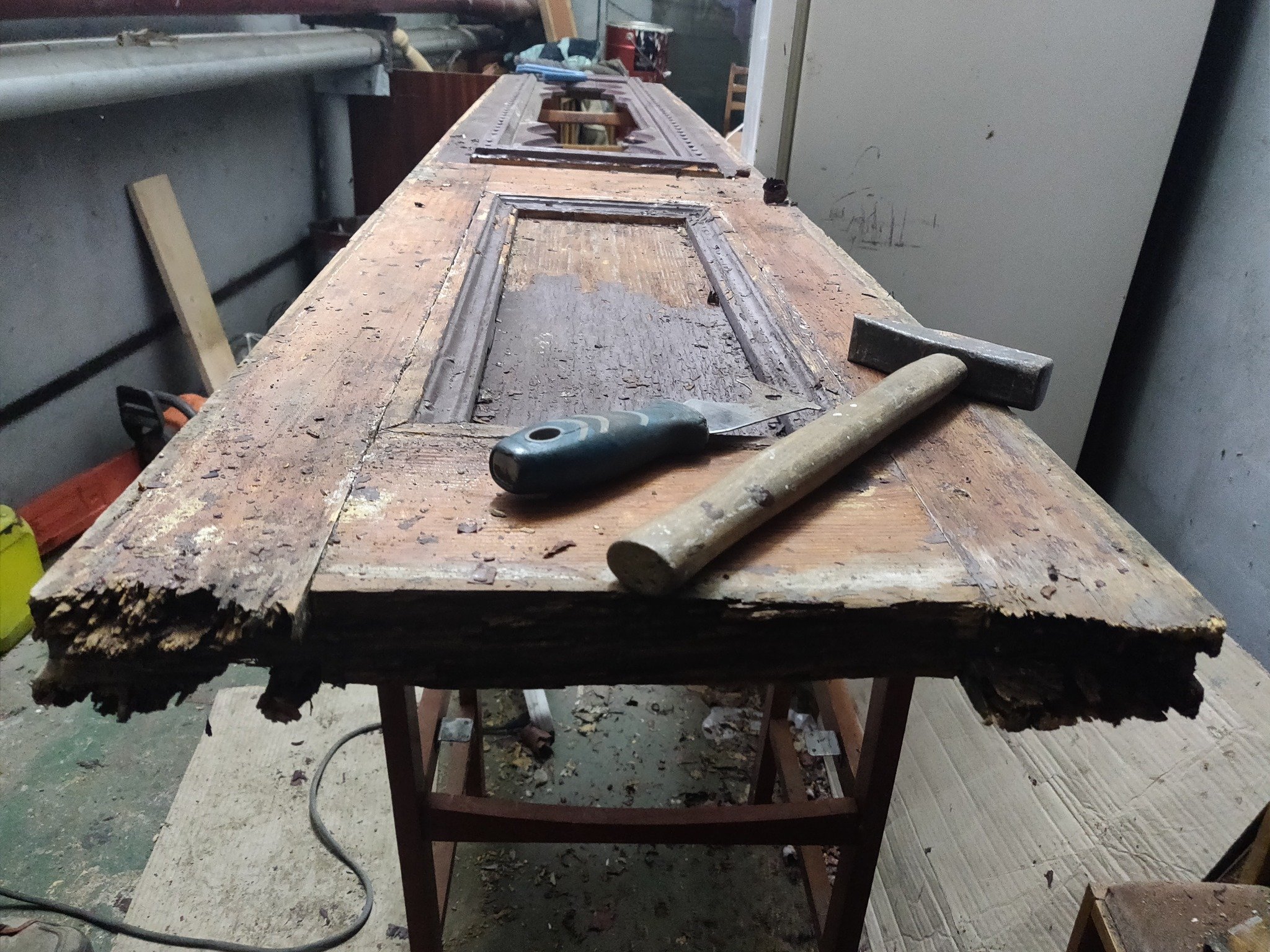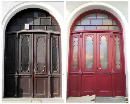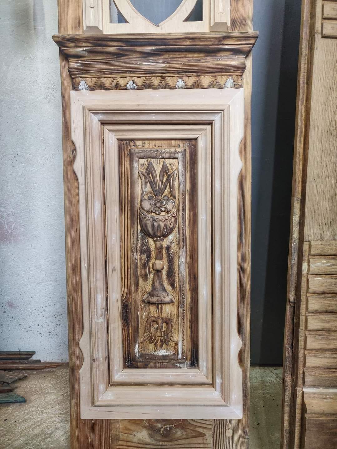 У всіх випадках було по максимуму збережено унікальну дерев’яну різьбу. Також майстри пофарбували двері, привели до ладу металеві решітки та зробили нове засклення.Робота над автентичними дверима в майстерні Івано-Франківська