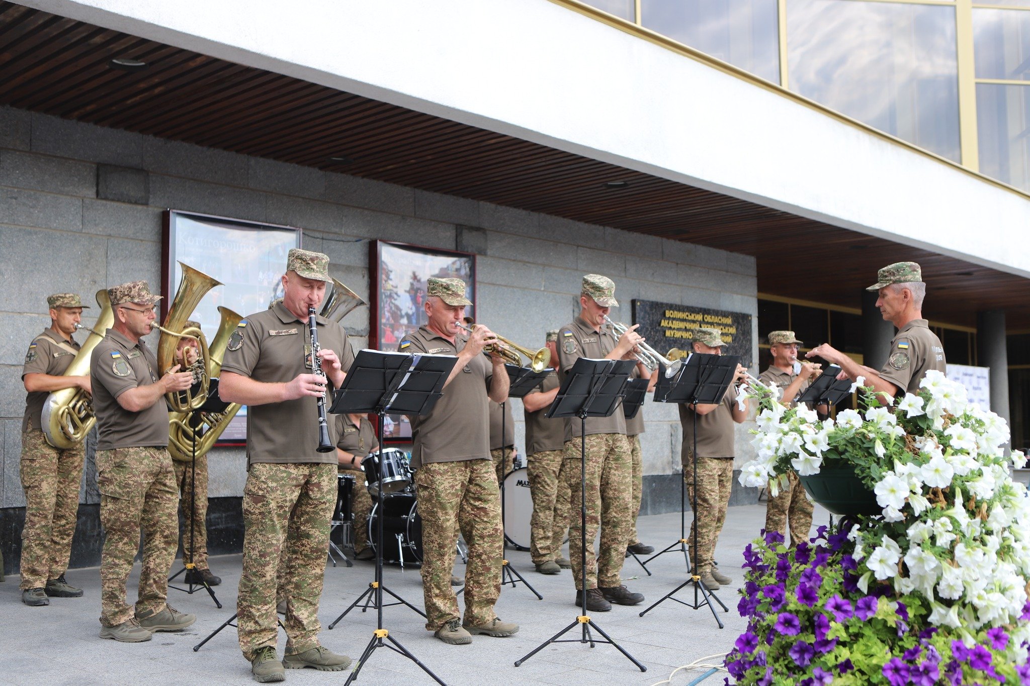 Святкову атмосферу створювали музичні привітання від оркестру військової частини 1141 Національної гвардії України, народного артиста України Сергія Скулинця, студентки ЛНТУ Юлії Свирид, а також Вікторії Павлів та Сергія Герцика.На завершення урочистостей, учасники розгорнули великий жовто-блакитний стяг, що символізує єдність, силу і непохитну віру в перемогу України.