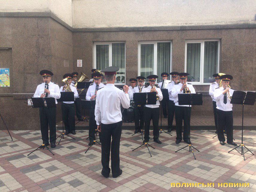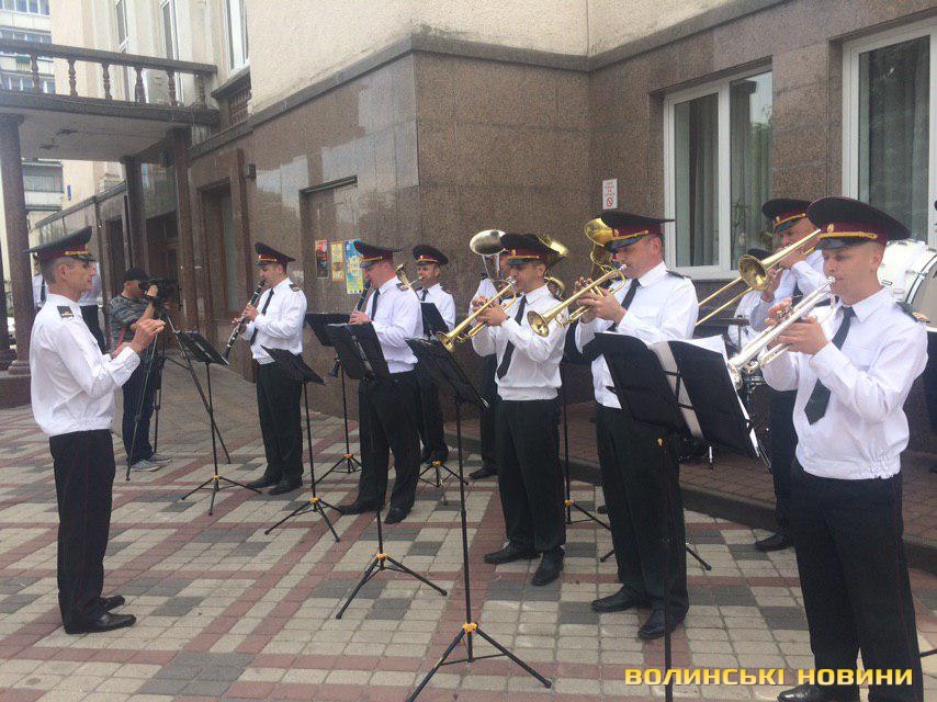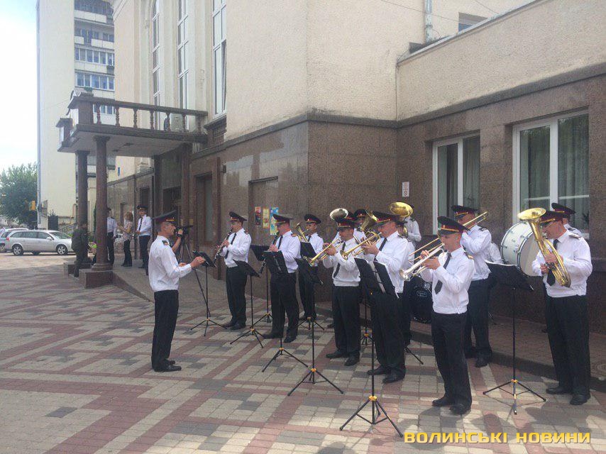 З нагоди 25-ї річниці створення військової частини 1141 Національної гвардії України у центрі Луцька виступає військовий оркестр.