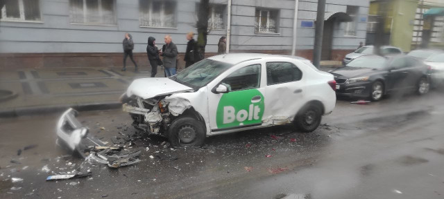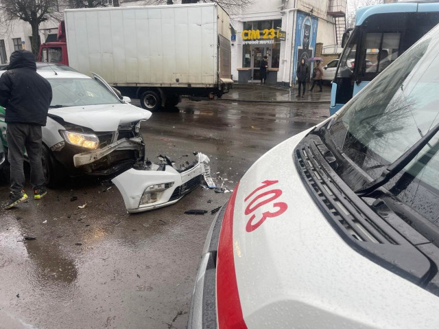 ДТП трапилася сьогодні в обідню пору біля будівлі обласної прокуратури. Дорогу не поділили два легковики – Toyota та таксі «Bolt» марки Renault. Унаслідок зіткнення в обох автівок значні механічні пошкодження.