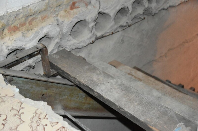 Зокрема, власник цих квадратних метрів в бетонній плиті перекриття зробив отвір та встановив металеві сходи, не маючи на це жодних дозвільних документів.