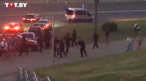 «Як повідомляють очевидці, силовики вистрибують з автозаків і затримують людей. Люди кричать: «Геть!», «Наш дім – Білорусь!». Гул стоїть по всьому проспекту», – йдеться у повідомленні. У Мінську біля готелю «Планета» затримують людей.