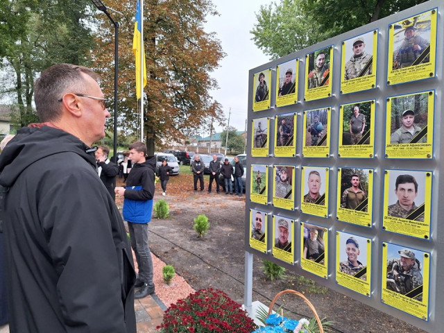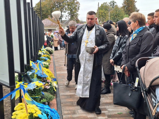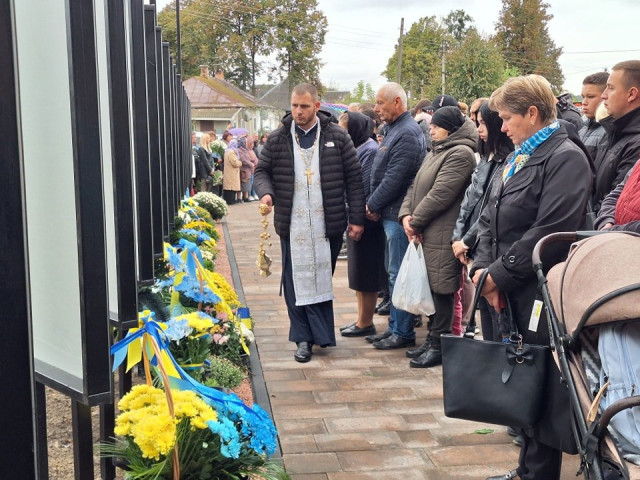 Місце скорботи і шани з портретами 40 мешканців громади, загиблих під час російсько-української війни, освятили у День захисників і захисниць та свята Покрови Пресвятої Богородиці у Цумані.