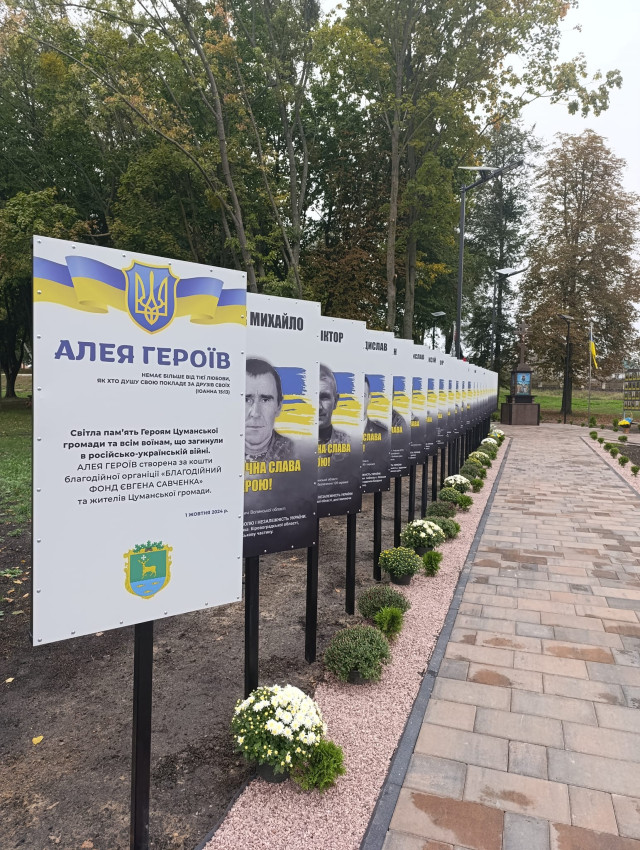 «Хочу подякувати усім, хто долучився до створення Алеї слави Героїв. Найбільша дяка голові благодійного фонду Євгена Савченка Марку Савченку, який вклав сюди свою душу і дуже багато коштів, священникам та громадам церков, сім’ї Ткачуків, яка втратила двох своїх захисників, силами і коштами яких був збудований пам’ятний знак, а також усім підприємцям, які долучилися гривнею, та тим, хто долучився працею», – зазначив голова Цуманської громади Анатолій Дорошук.