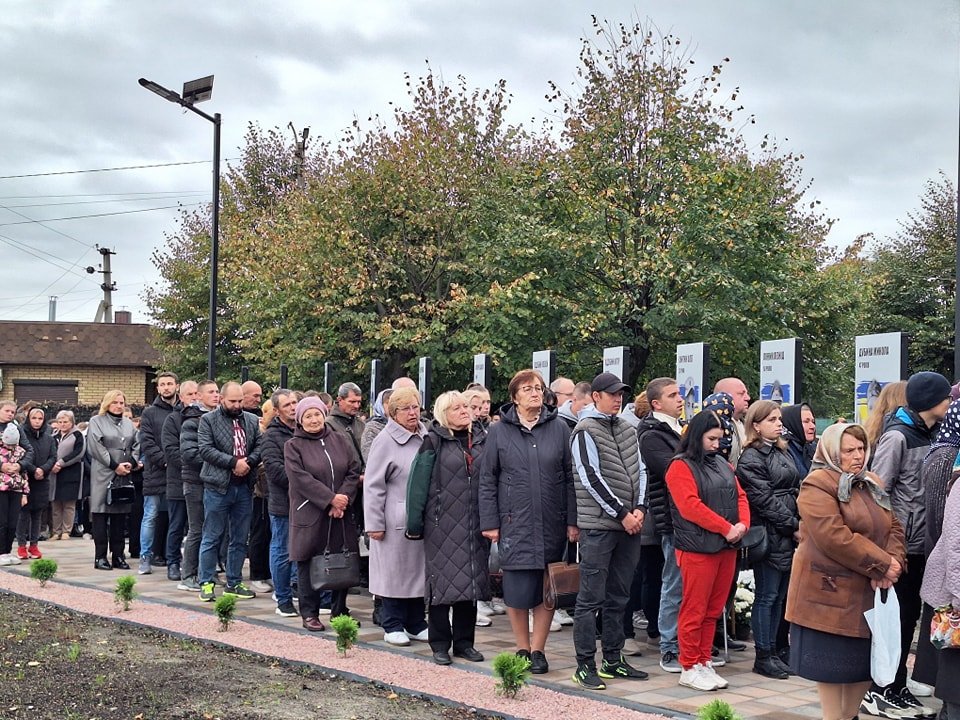 Священнослужителі освятили алею та відслужили панахиду за загиблими Героями, потому присутні поклали квіти до стендів загиблих захисників.