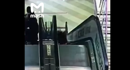 У московському ТЦ «Мегаполіс» дівчинка намагалася спуститися ескалатором з візочком, але не втримавши його, вона разом з 2-річним братом впали і покотилися донизу.