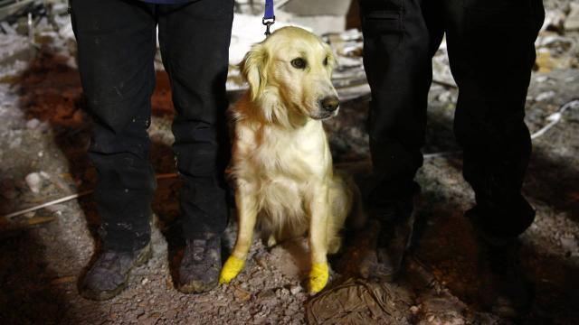 У турецькій Малатьї під час землетрусу постраждав собака на прізвисько Кепюк. Попри травми чотирьох лап пес врятував вже п’ятьох людей.